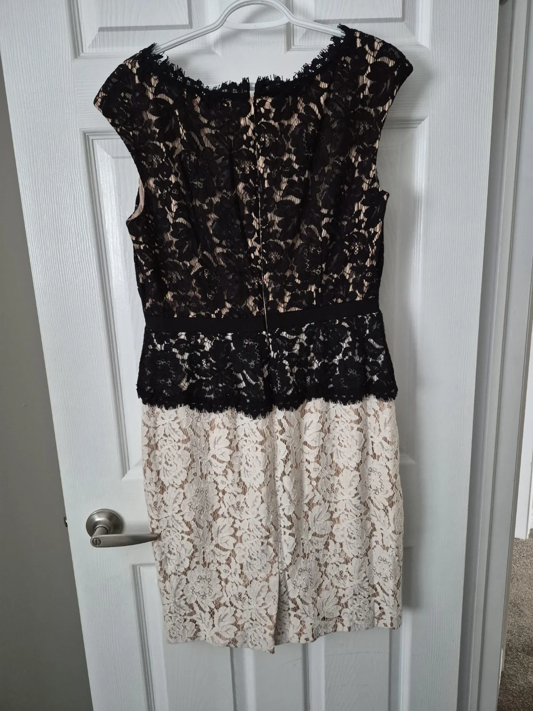 Size 12 Black and Cream Lace Cap Sleeve V-Neck Dress