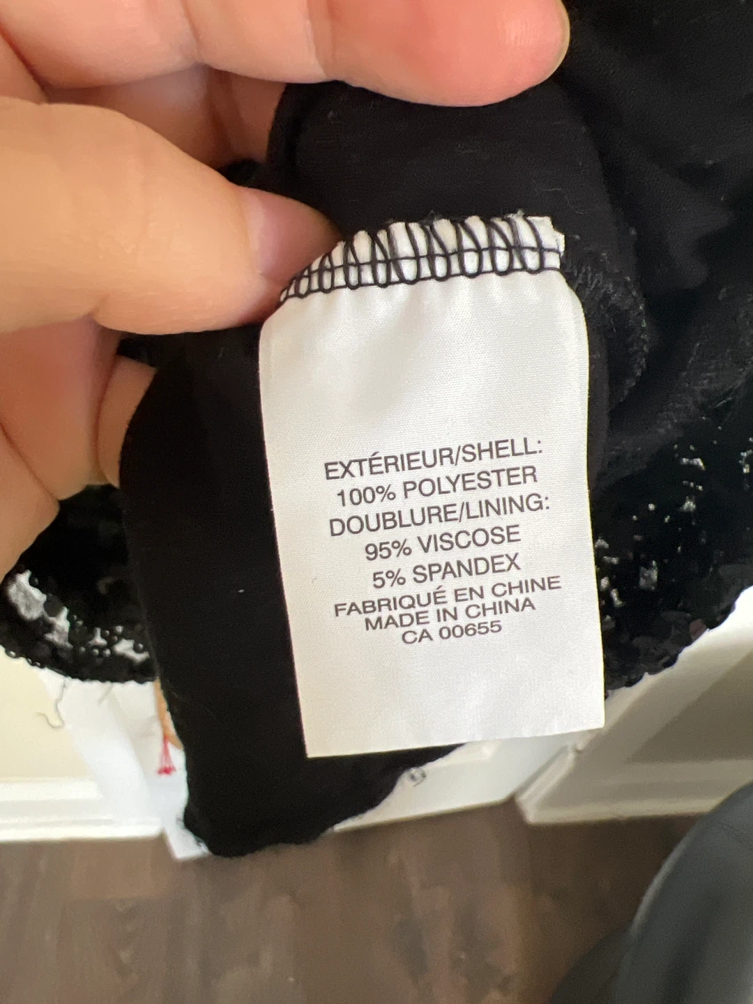This black sequin dress from Smart Set is eye-catching. It's made with 100% polyester shell and a lining of 95% viscose and 5% spandex. It's great for a night out or special occasion!