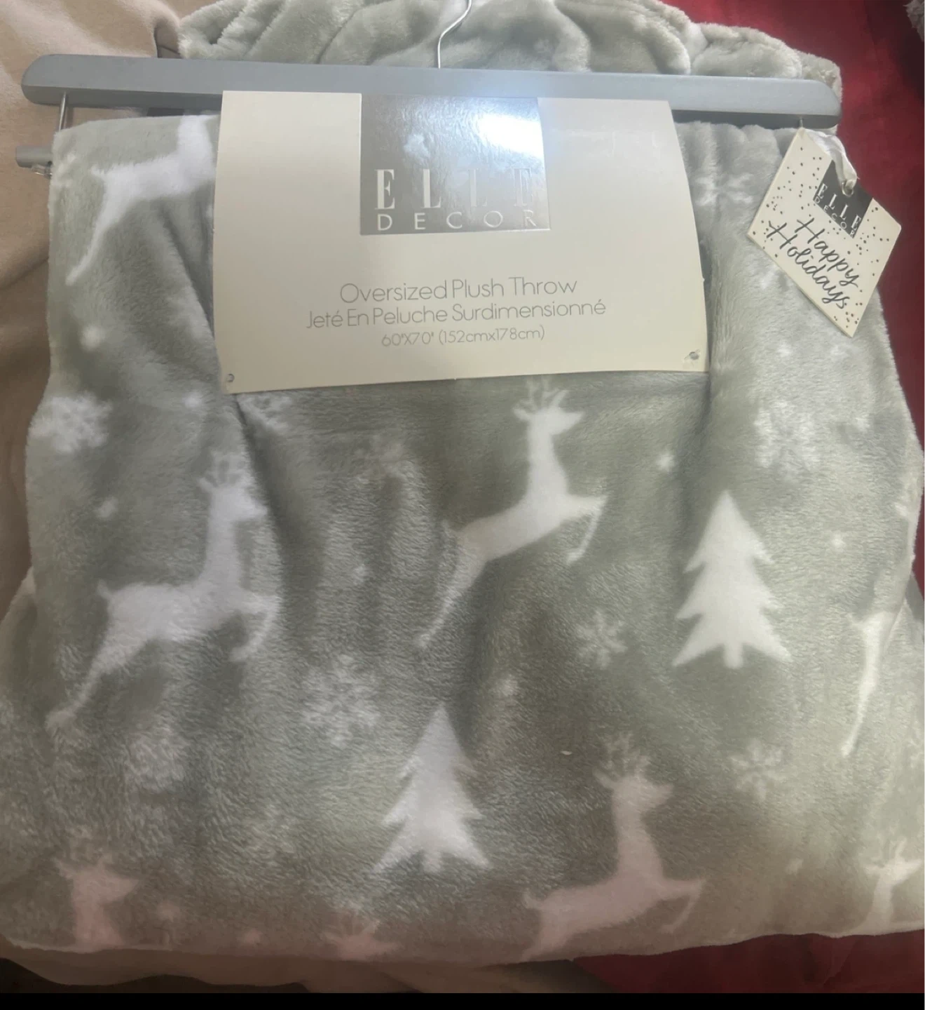 This ELLE DECOR oversized plush throw features a charming reindeer and snowflake pattern. It's made from 100% polyester and measures 60x70 inches. Cozy up with this festive and soft throw!
