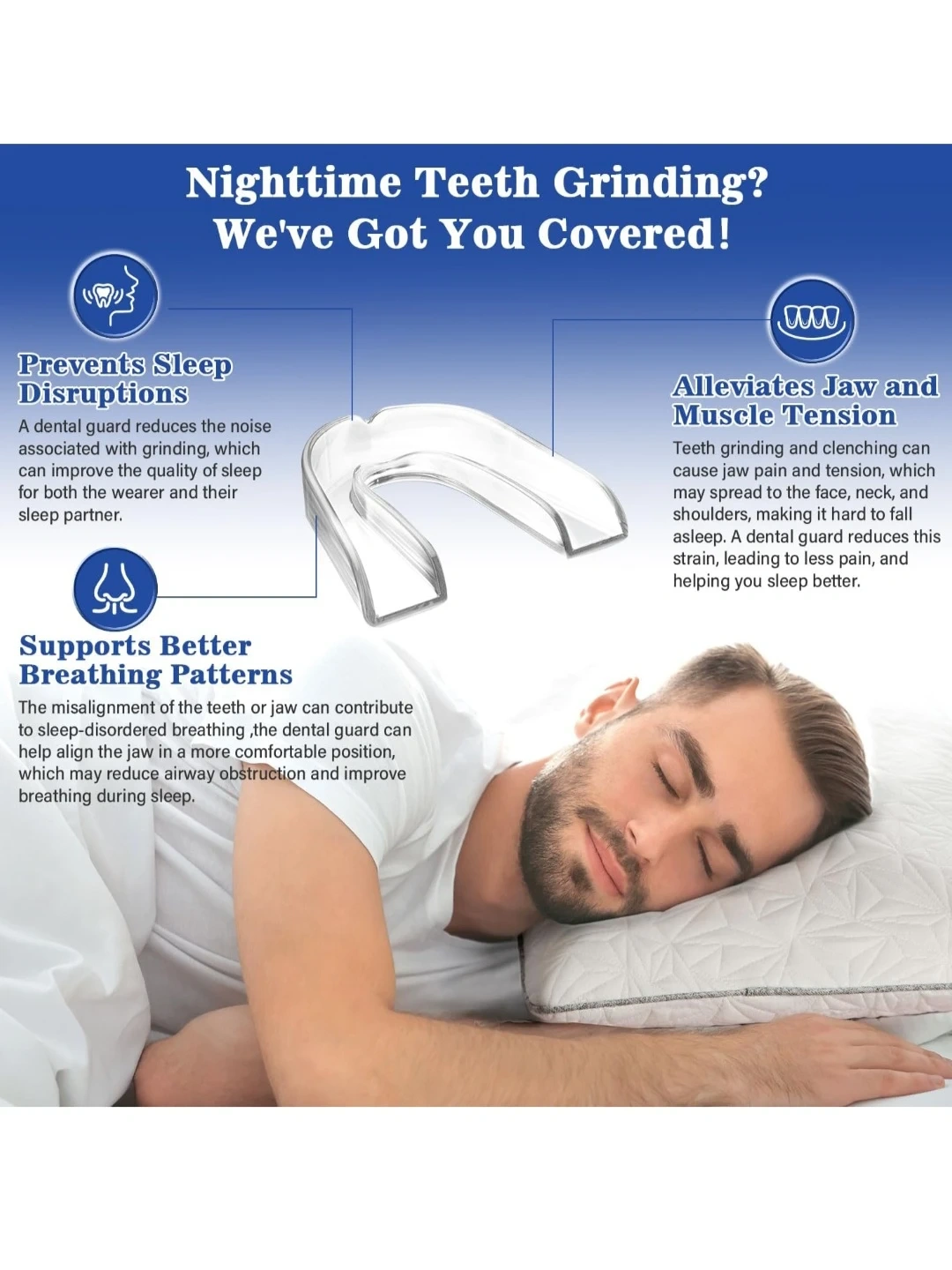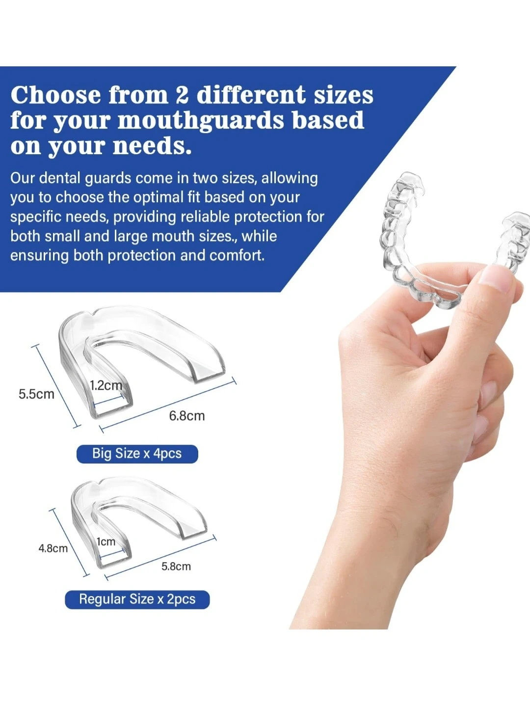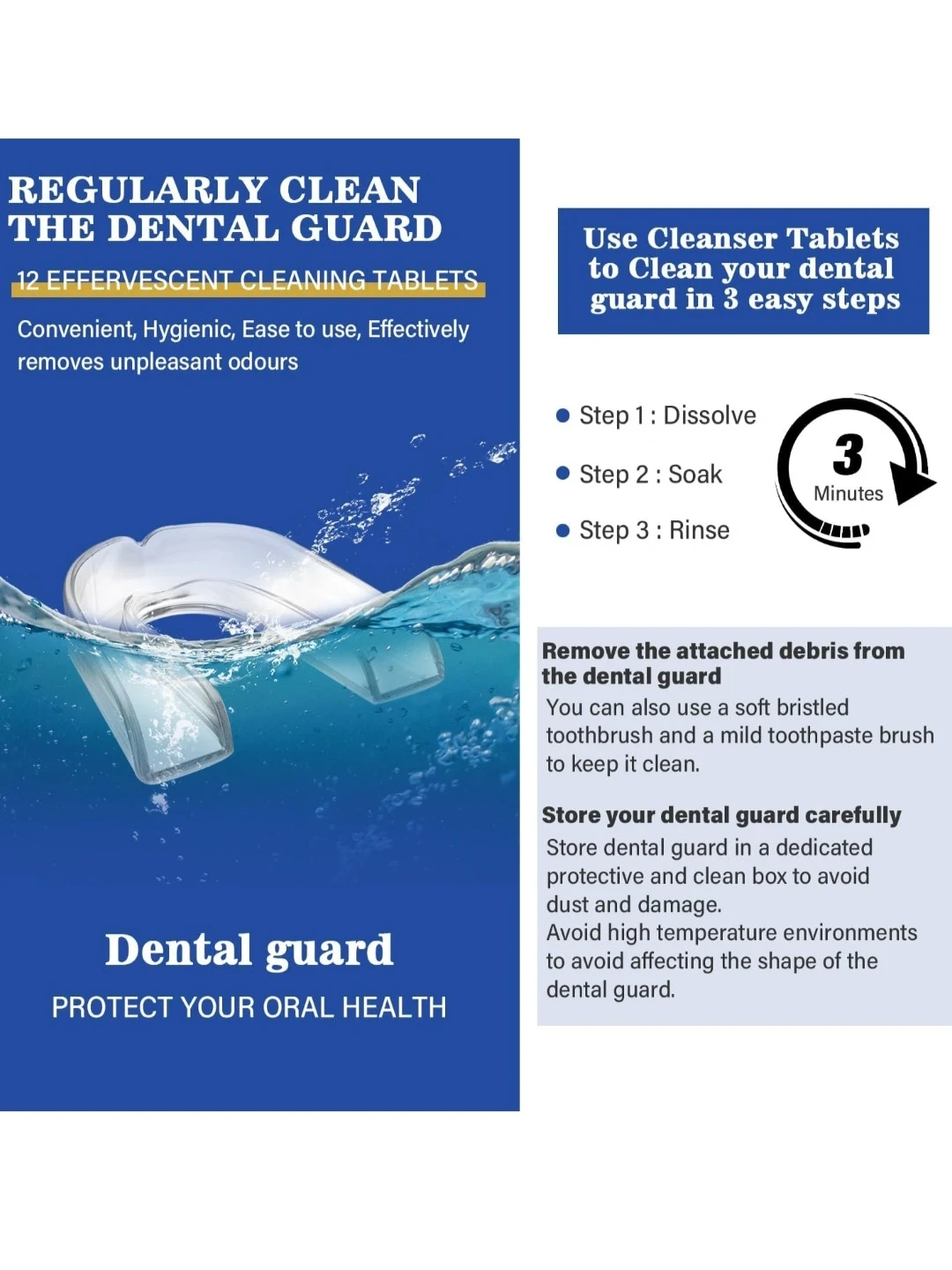 This MITREAL mouth guard set includes 12 cleaning tablets and comes in 2 sizes. It's made from food-grade EVA material with a durable firm layer and an ultra-soft layer for comfort and protection. The guards are easily trimmed to fit and help prevent grinding and bruxism.