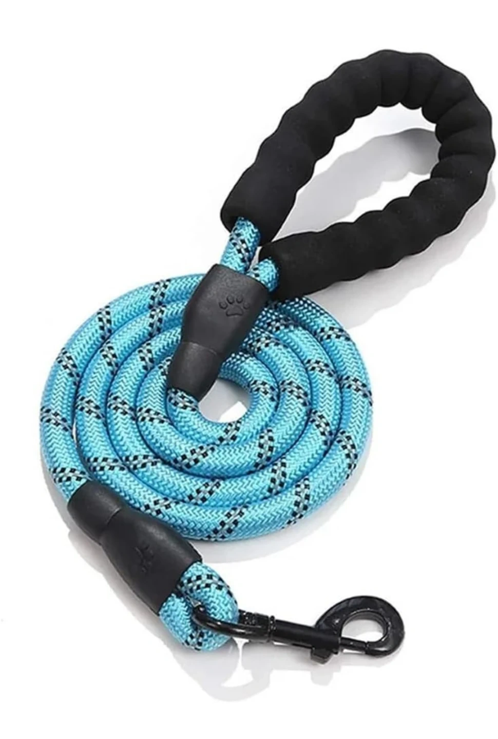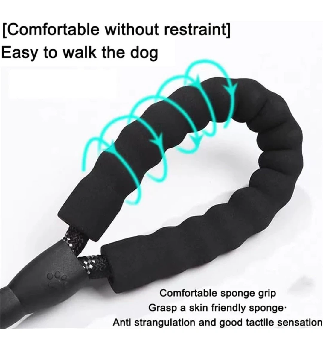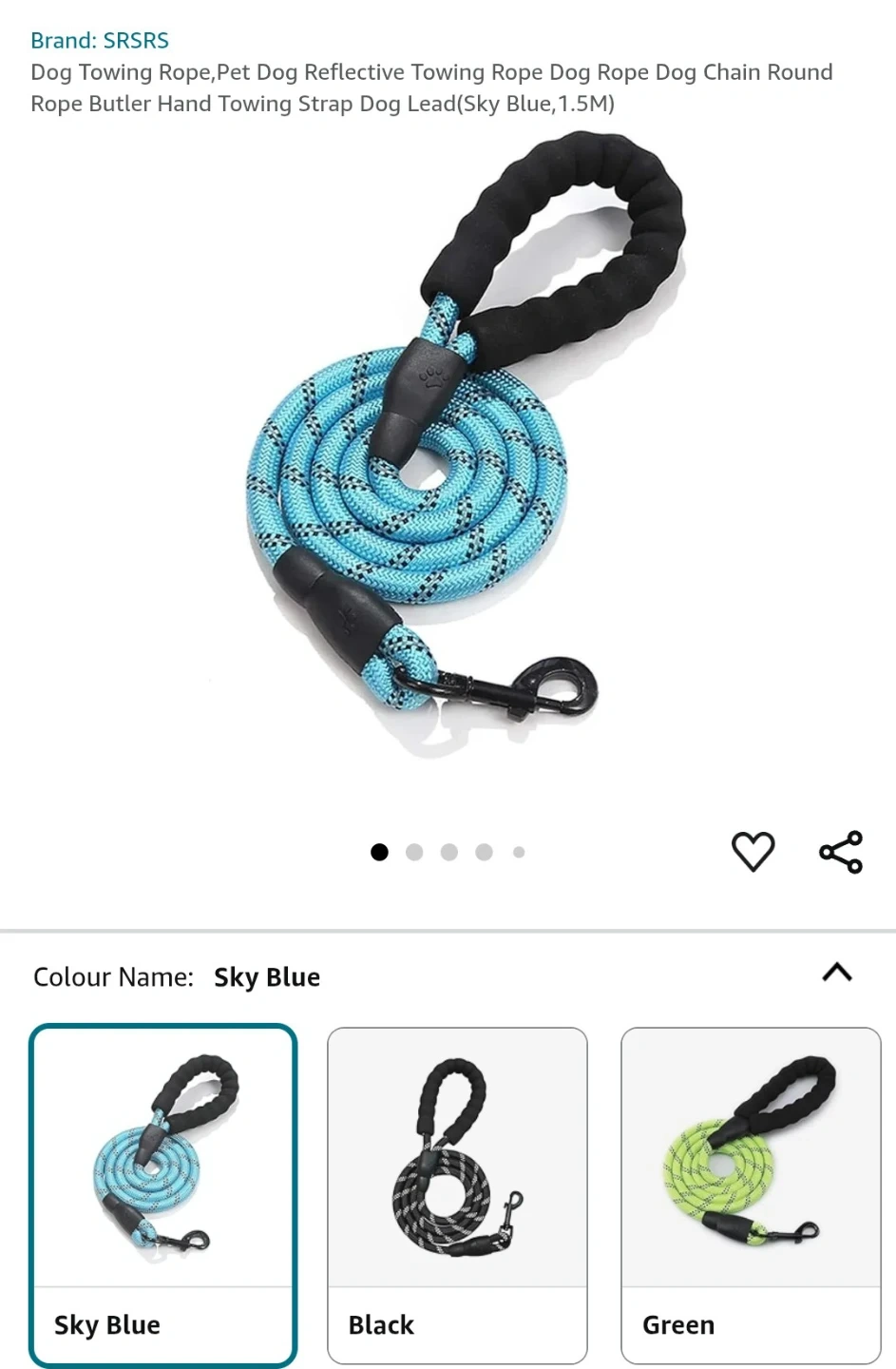 This is a SRS dog leash with a comfortable padded handle. It's 1.5 meters long and comes in a sky blue colour. The rope is durable and sturdy for your pet. It's great for walks with your dog!