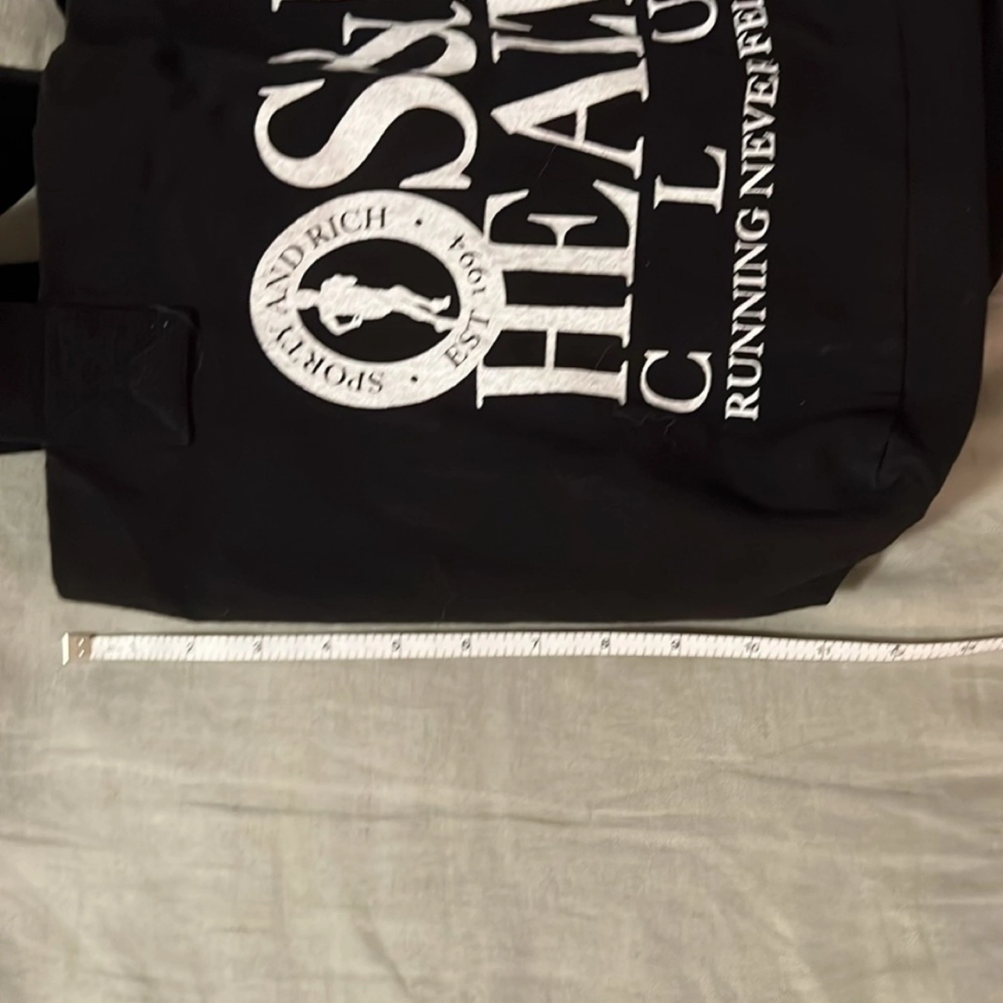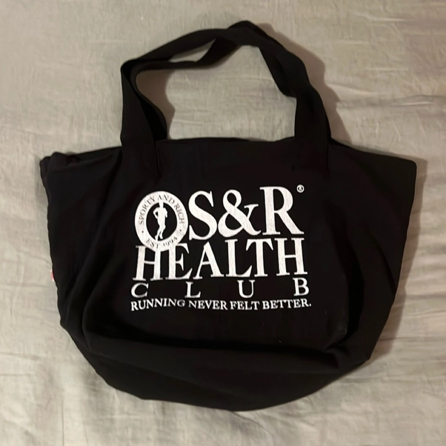 Black tote bag. Features S&R Health Club logo. Two fabric handles. Made in the USA. Great condition, only used a few times. Paid $130 plus tax