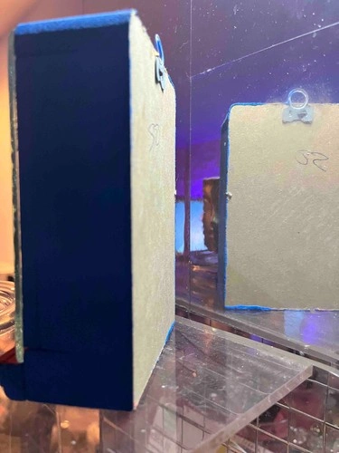 A unique piece of collectible folk art featuring a Dia de los Muertos styled skeleton Marilyn Monroe wearing her famous white dress from "Seven Year Itch." The figurine is made of painted fired clay within a handcrafted wooden shadowbox with a glass front. The frame, backdrop, and her red carpet are decorated with glitter (silk, paper, paint). It's charming and mesmerizing, a true piece of folk art! The perfect gift for any Hollywood or Marilyn Monroe fan. The wooden shadow box measures W 3.5” x H 5.25” x Top Depth 1.75