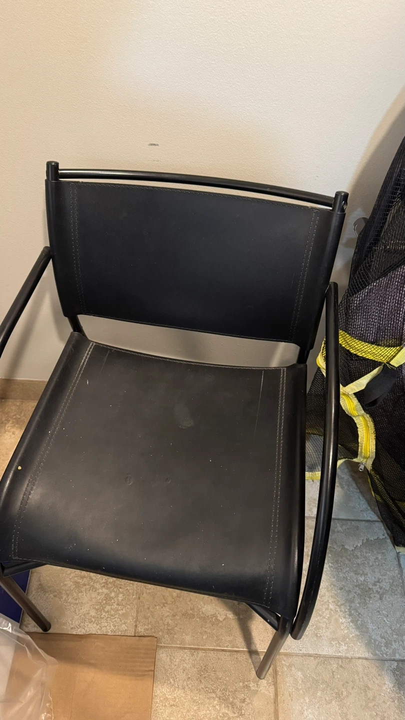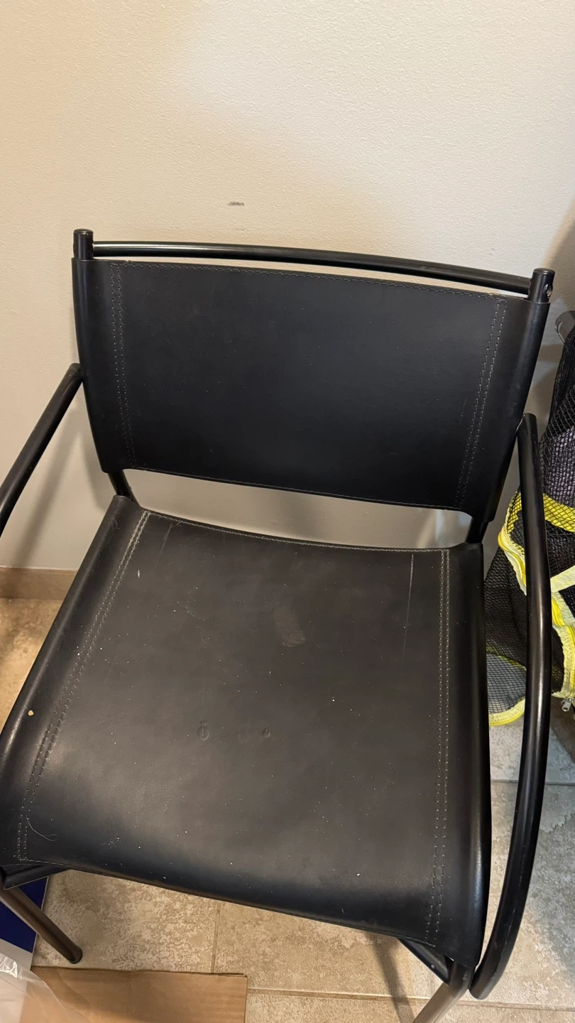 Glass Top Table Base with 4 Black Leather Chairs