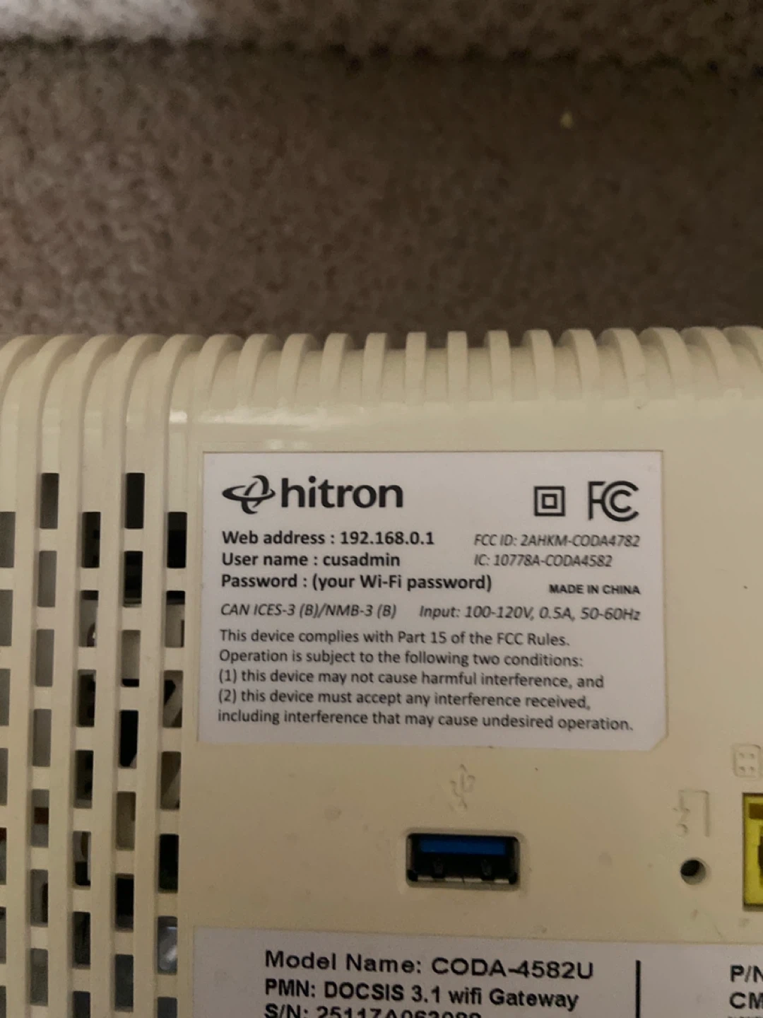 Hitron CODA-4582U DOCSIS 3.1 WiFi Gateway