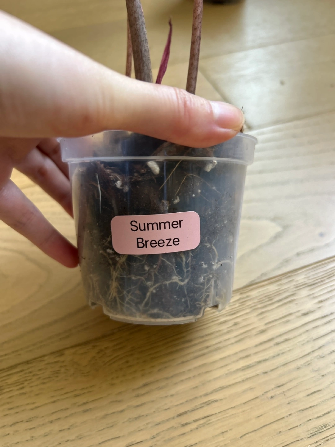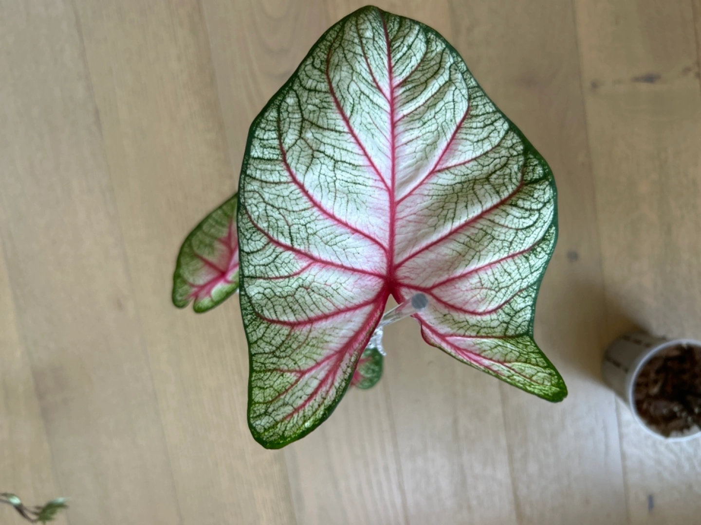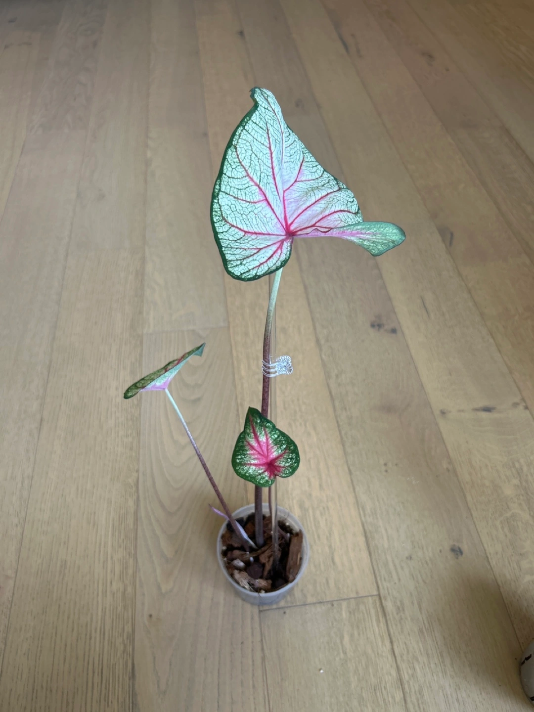lovely Caladium plant 'Summer Breeze' variety Grown from fresh bulbs this year. It's currently potted in a small plastic container with high quality chunky soil (aroid mix) Healthy roots!