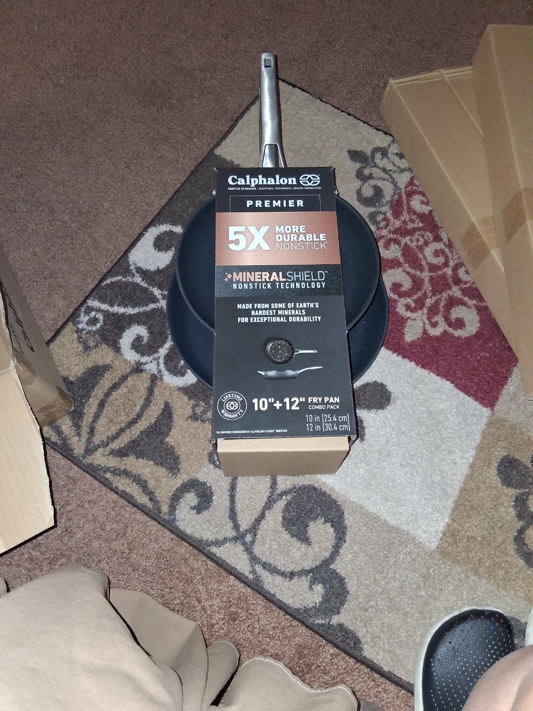 5Selling a brand new Calphalon Premier fry pan combo pack! This set includes a 10-inch and a 12-inch fry pan. They feature MineralShield nonstick technology, making them 5x more durable. The pans are made from some of Earth's hardest minerals for exceptional durability