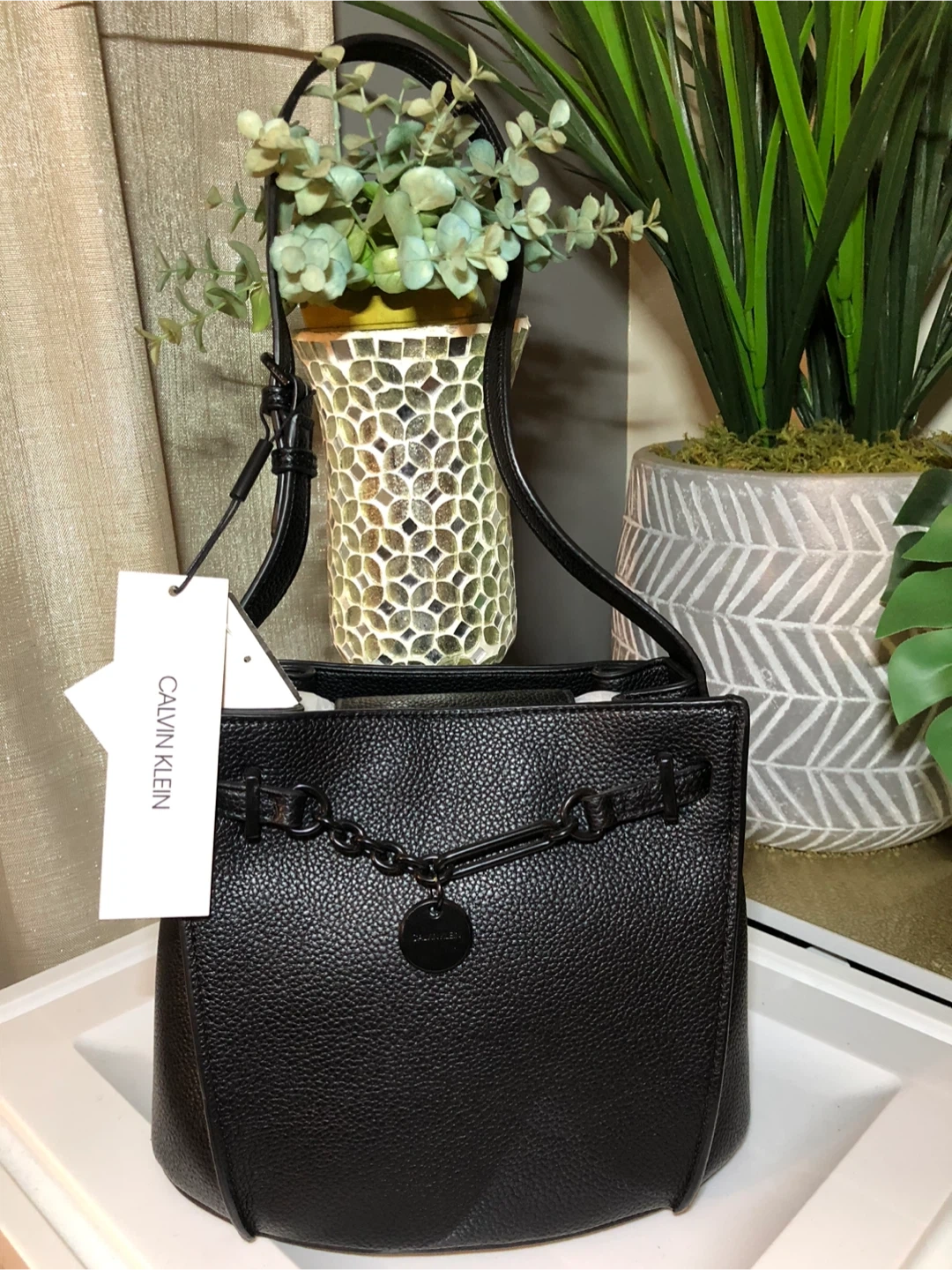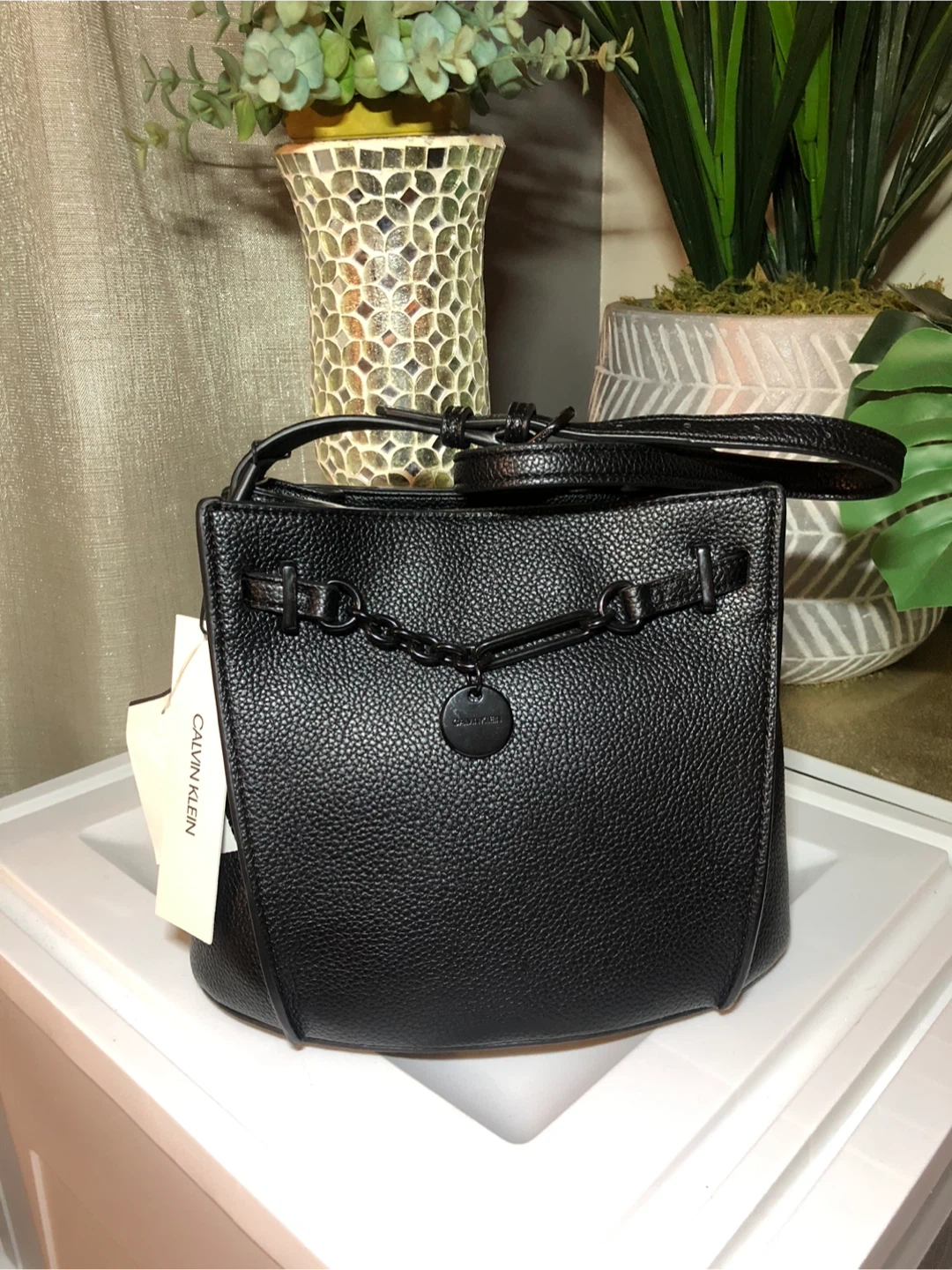Selling a Calvin Klein handbag in black leather. It's in great condition and ready for a new home. Originally bought for $148