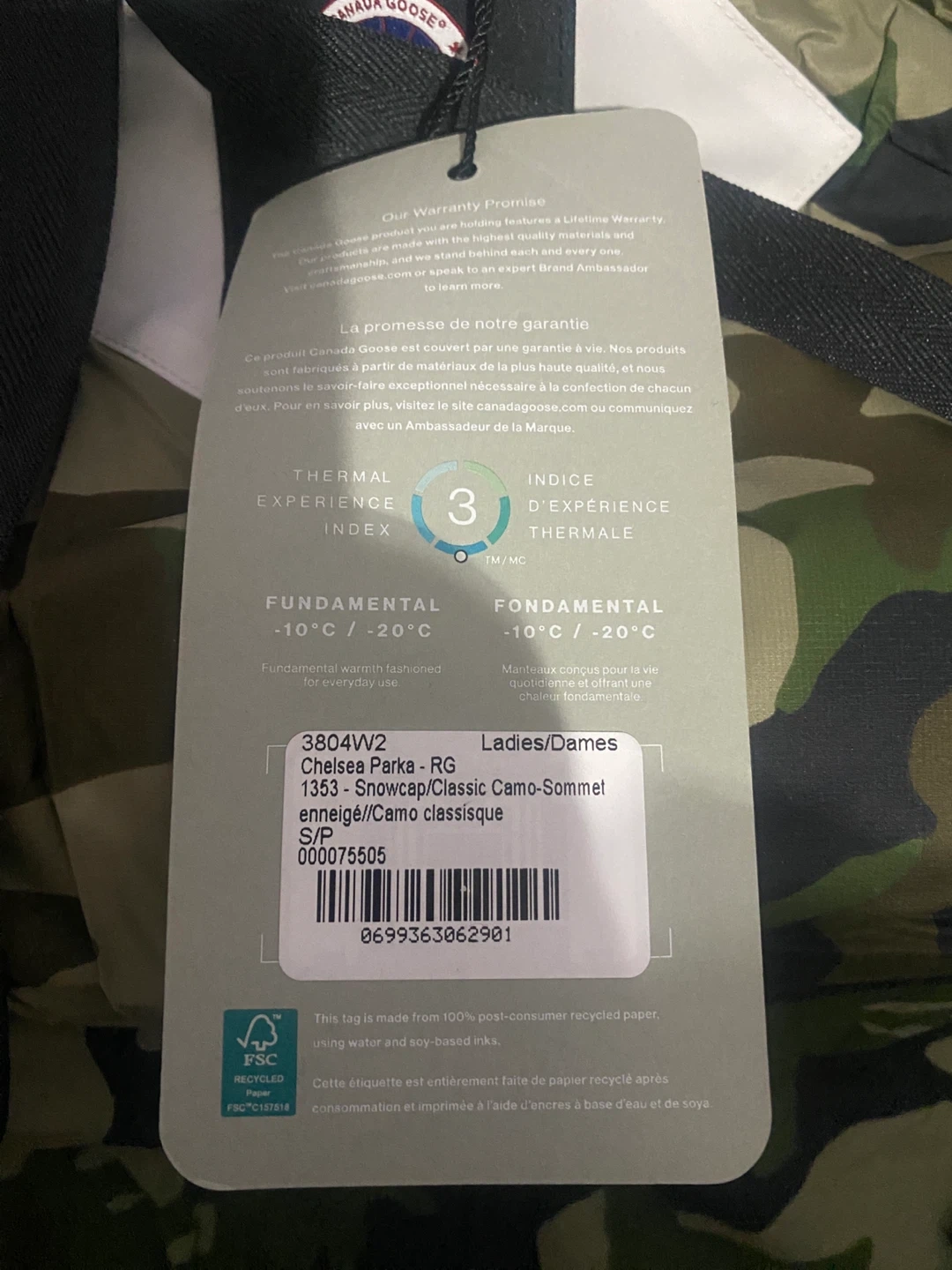 10Selling a Canada Goose Chelsea Parka in a cool camo print! This jacket is a size small and is in great condition. It's perfect for staying warm in temperatures down to -10°C / -20°C. A stylish and functional piece for the colder months!
