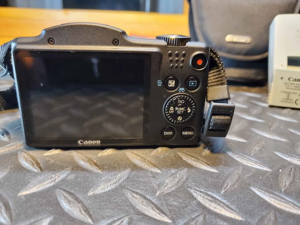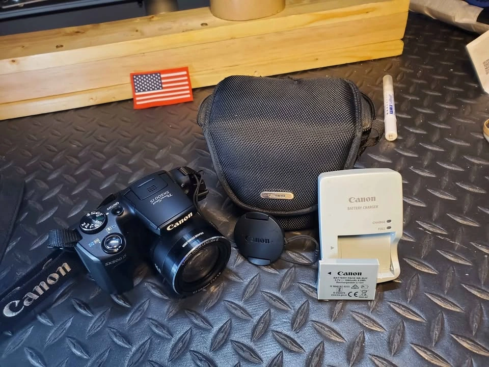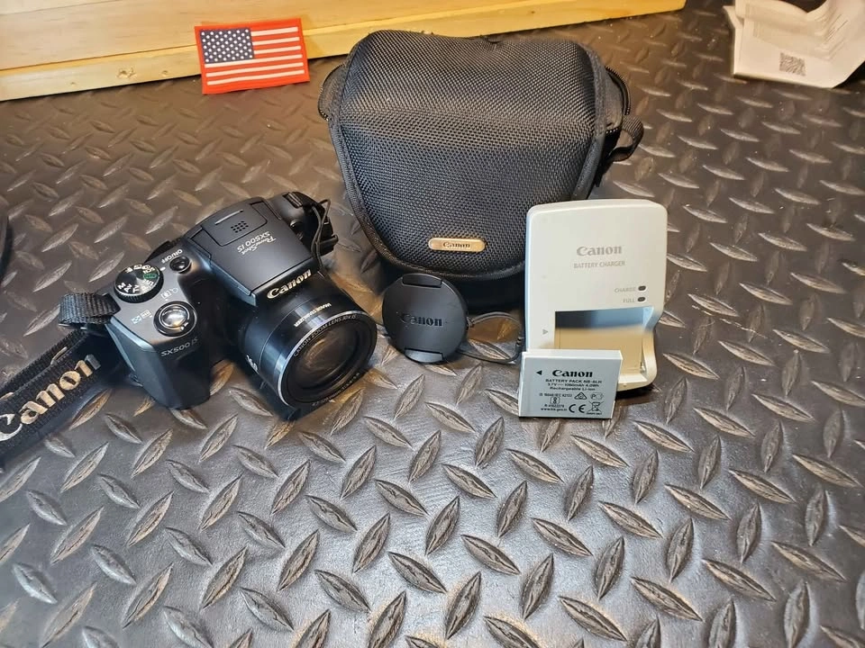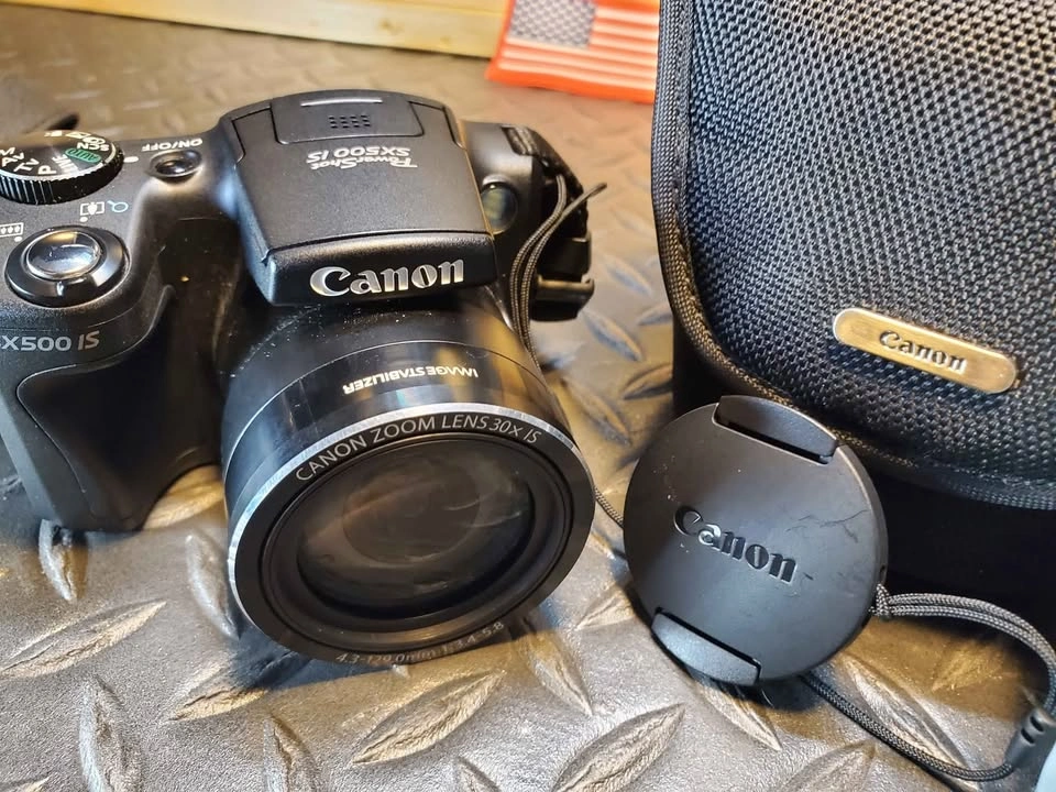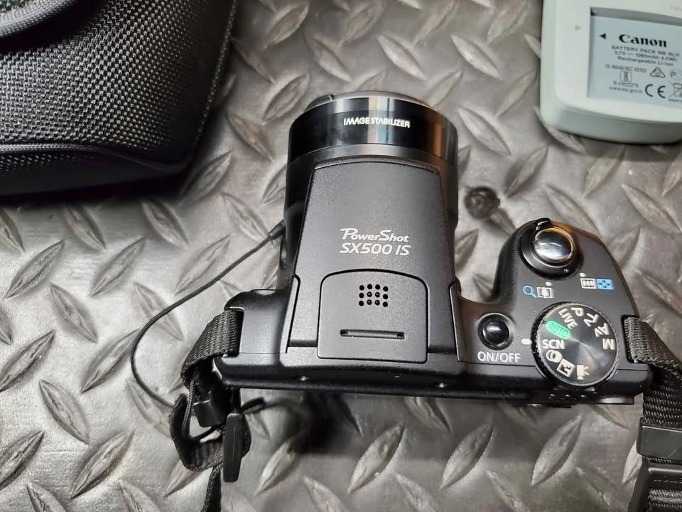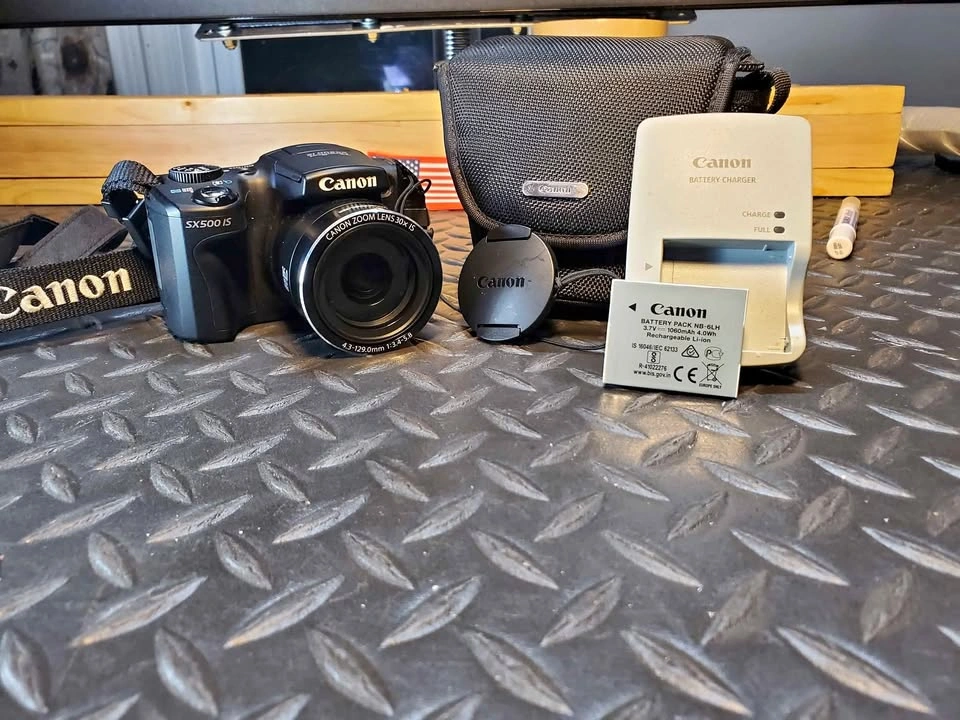 5Canon PowerShot SX500 IS in excellent condition and fully tested. This camera has a 16 MP sensor, 30× optical zoom (24–720 mm equiv.), and optical image stabilization for sharp photos and smooth 720p HD video. Includes: • Canon SX500 IS camera body • Canon NB-6LH battery (holds charge well) • Canon charger • Canon lens cap + strap • Canon soft carry case Condition: All functions tested. Lens glass clean and scratch-free. LCD screen clear. Buttons and zoom work smoothly. Normal minor wear only. Notes: – Ready to use right away. – $165 cash or best offer