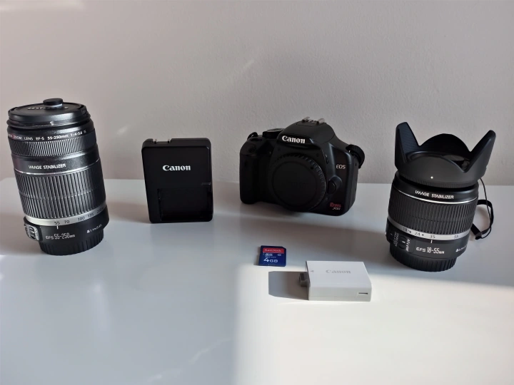 This is a great all-in-one bundle — everything you need to start shooting right away. Shutter count: 10,775 (low for this model). Excellent cosmetic condition, very clean. - Canon Rebel XSi camera body (10,775 shutter count) - Canon EF-S 18–55mm lens - Canon EF-S 55–250mm telephoto zoom lens - Original Canon battery & charger - Camera body cap & lens caps - Camera bag + protective cases - 4GB SanDisk memory Card