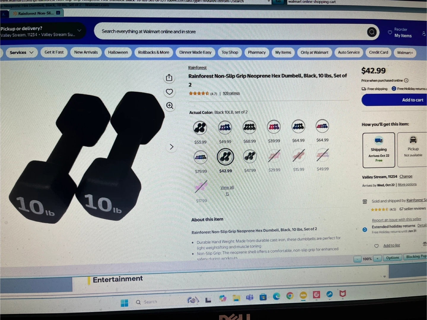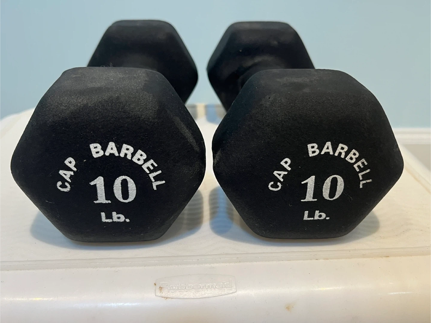 Selling a set of CAP Barbell 10lb dumbbells in black. These are great for light weightlifting and muscle toning. The durable hand weights are made from durable cast iron and feature a comfortable, non-slip grip for enhanced safety during workouts. Retails for $42.99