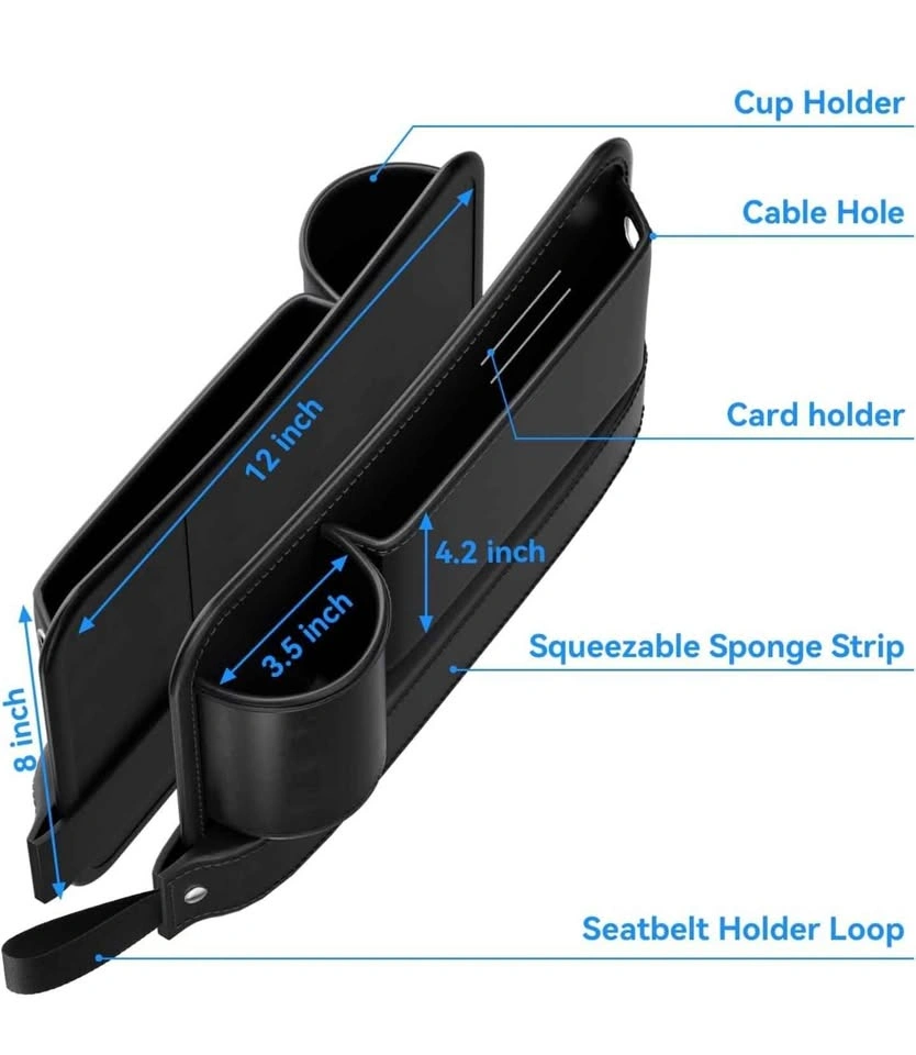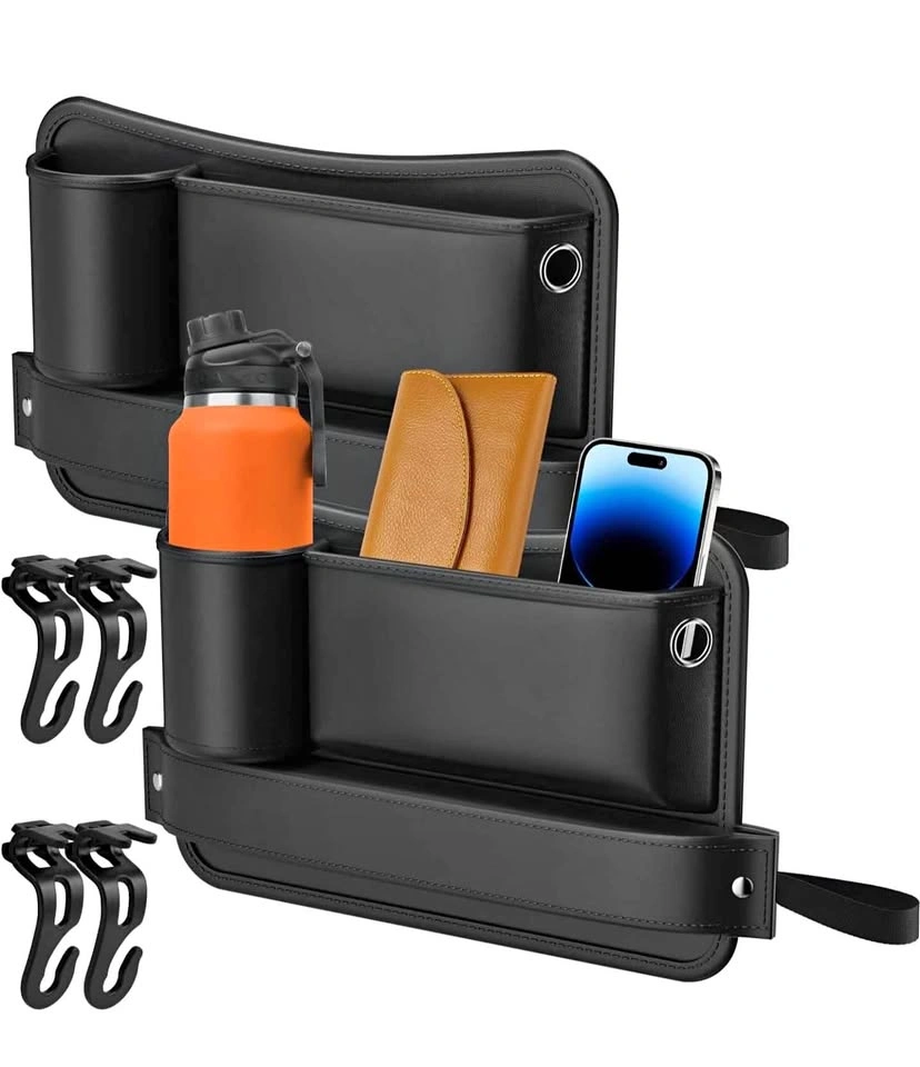40Car Seat Gap Organizer 2-Pack, Features a Cup Holder Design with a Leather Cup Holder Compartment for Drinks, Phones, and Cards, Equipped with 4 Multi-Functional Hooks, Unisex car Storage Accessories