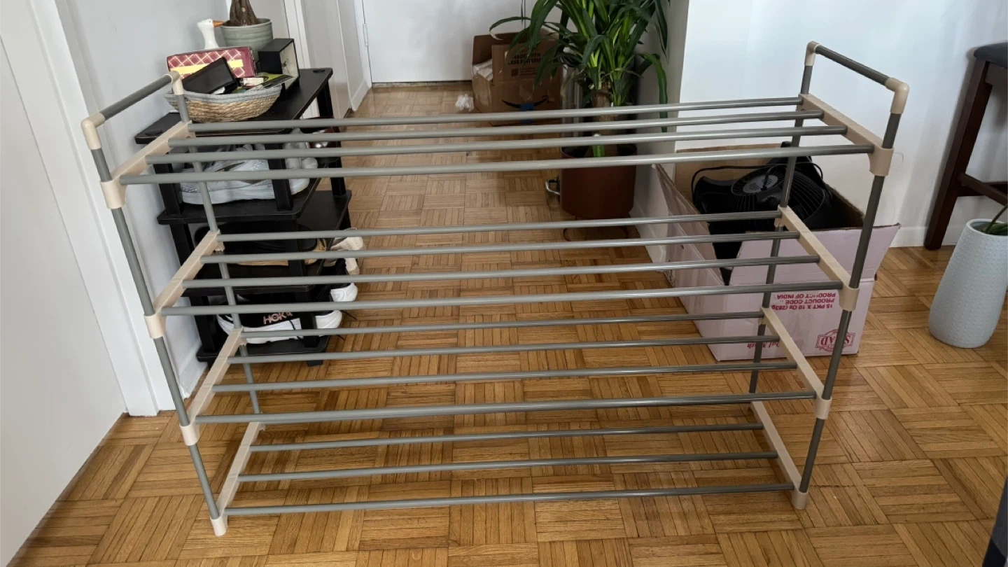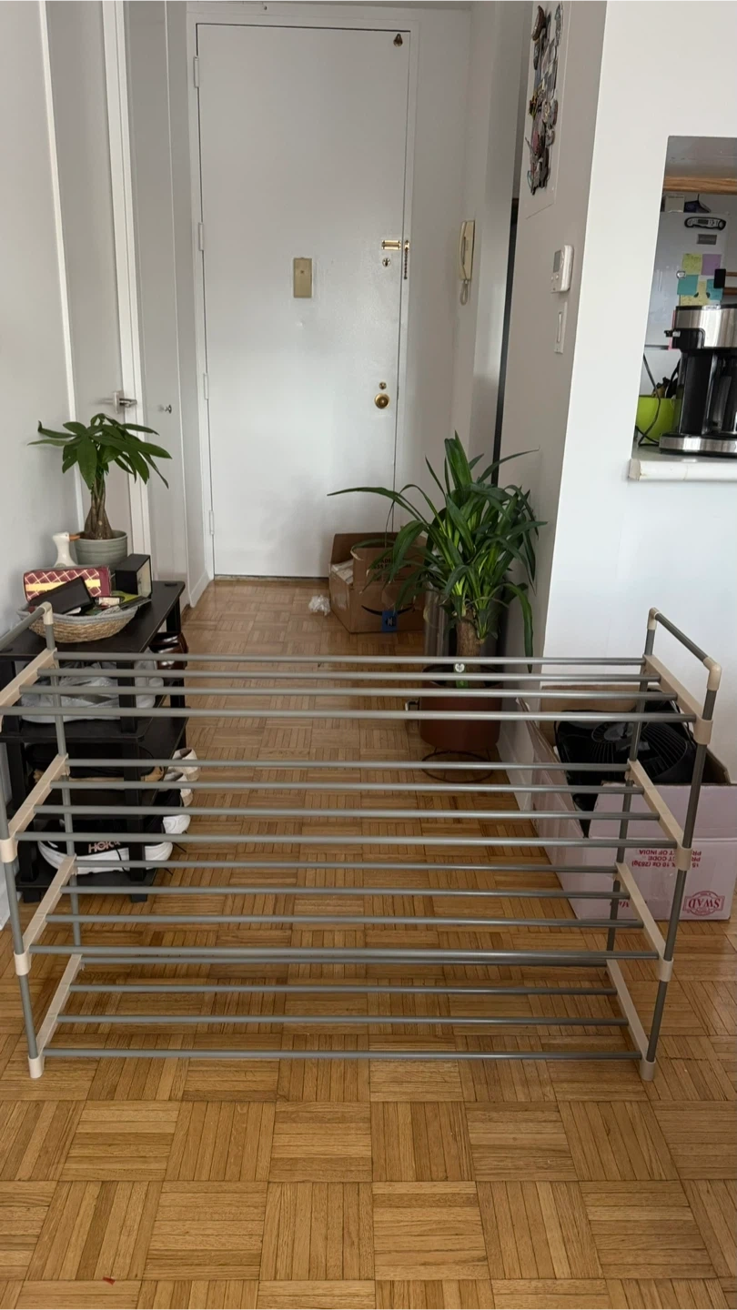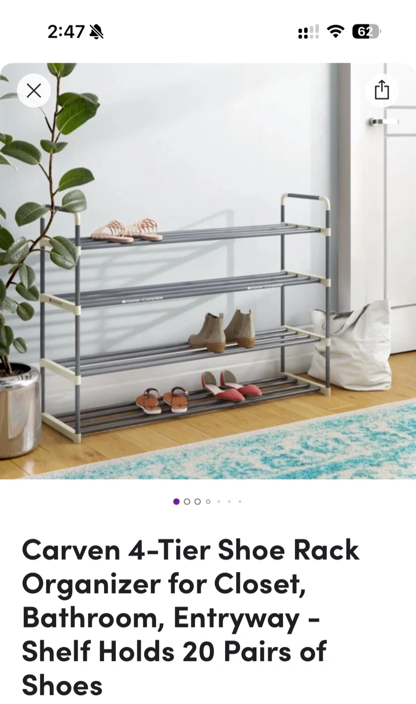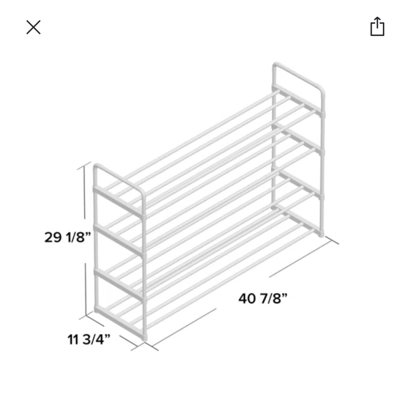 10I'm selling a Carven 4-Tier Shoe Rack Organizer! It's perfect for closets, bathrooms, entryways, and can hold up to 20 pairs of shoes. The dimensions are approximately 29 1/8" high, 40 7/8" wide, and 11 3/4" deep