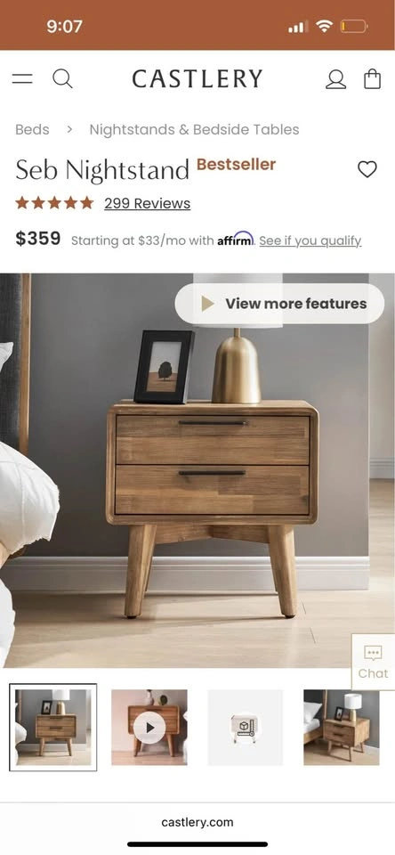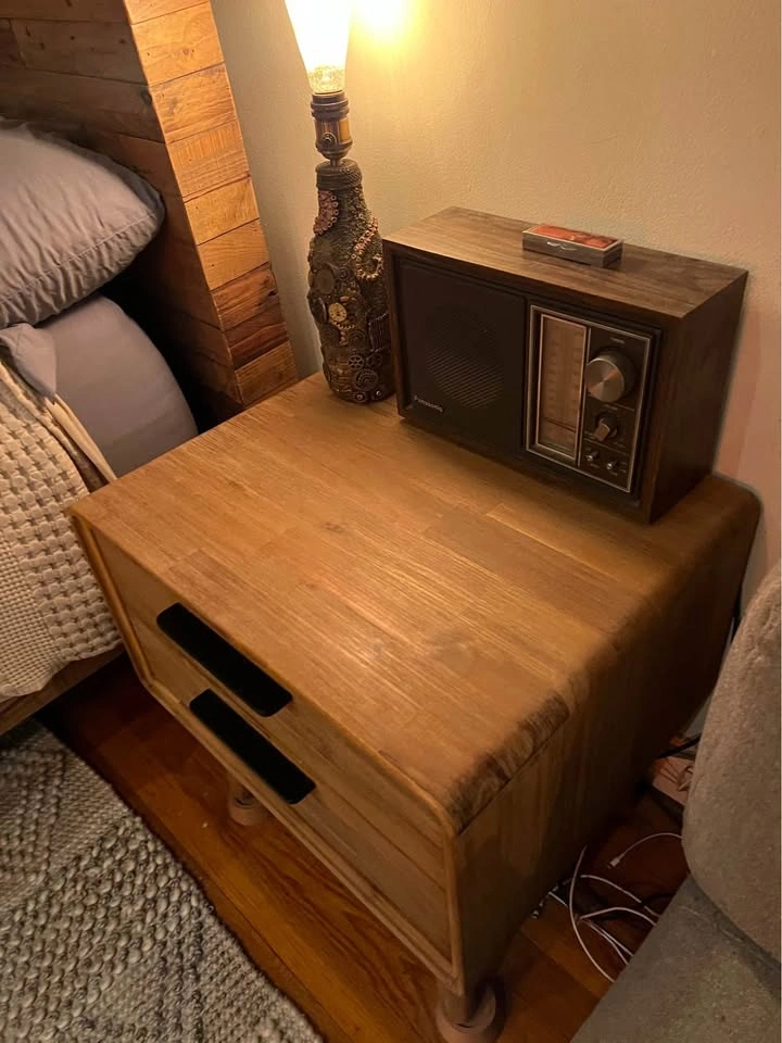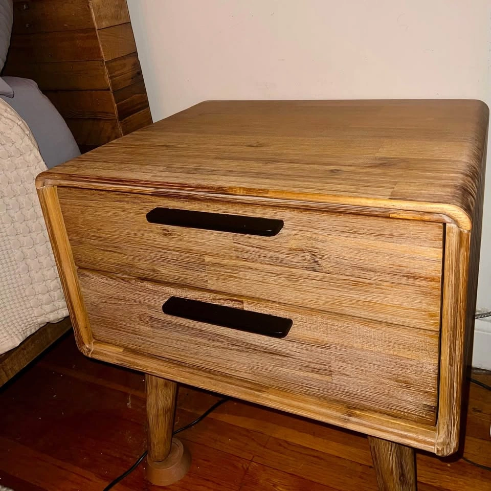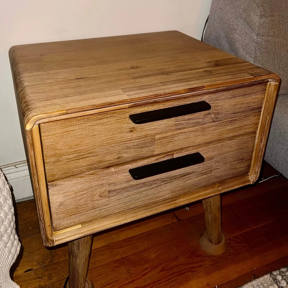 Only a few months old and in mint condition. Both drawers are lined with black velvet, and I’ve used a protective insert to keep them pristine so the interior looks brand new. Retails for $359 at Castlery Solid acacia wood with modern, minimal design, natural wood texture Dimensions: 22”W × 17.7”D × 21.6”H Smoke-free, pet-free home Available for pickup in Hell’s Kitchen