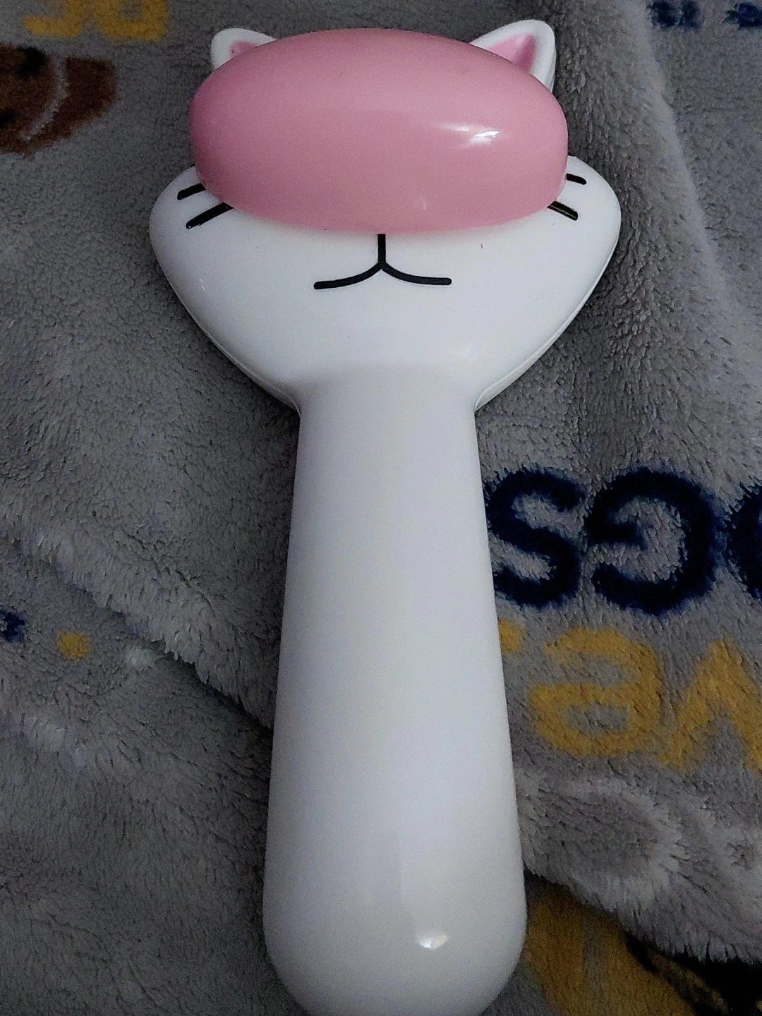 204This is a cute cat-shaped massager! It's white with a pink top. It's in good condition and ready for a new home