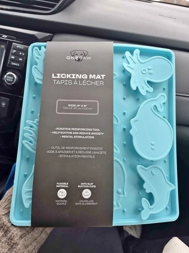 Brand new dog licking mat. A positive reinforcing tool to help soothe and reduce anxiety in dogs, providing mental stimulation. Features a flexible material and anti-slip design. From Derry & McLaughlin.