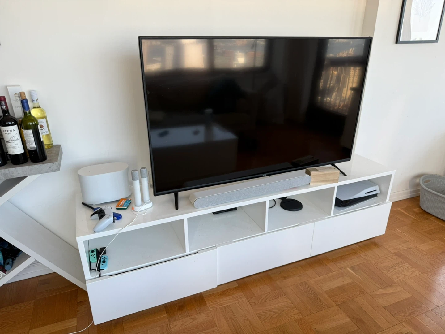 Lightly used 80 inches wide Bought for $1500 Pickup in Columbus Circle https://www.cb2.com/chill-80-white-high-gloss-media-console/s378471?srsltid=AfmBOopthp05bGgN16Mr_GJAP_wi92oOIBkPMlqZfuK9fOM9HKXzDcZA
