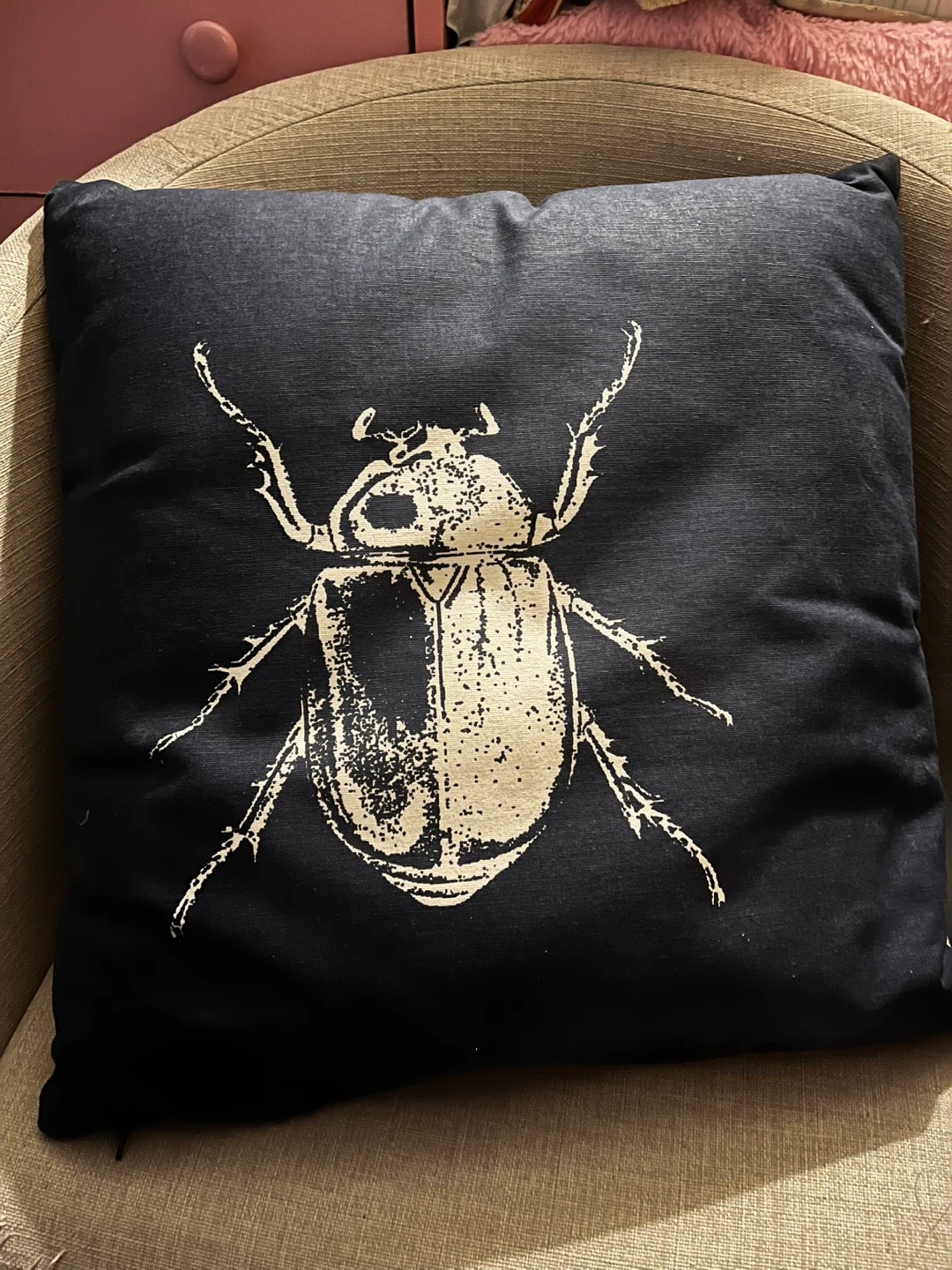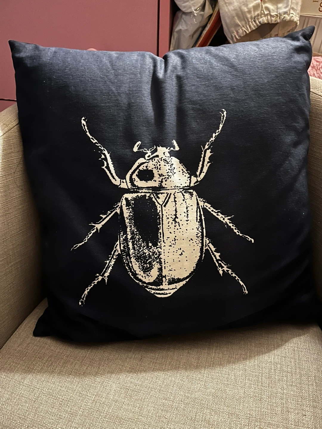 💚IKEA TISTELFJÄRJL cushion cover with a distinctive beetle design. It measures 45x45 cm (18x18").
