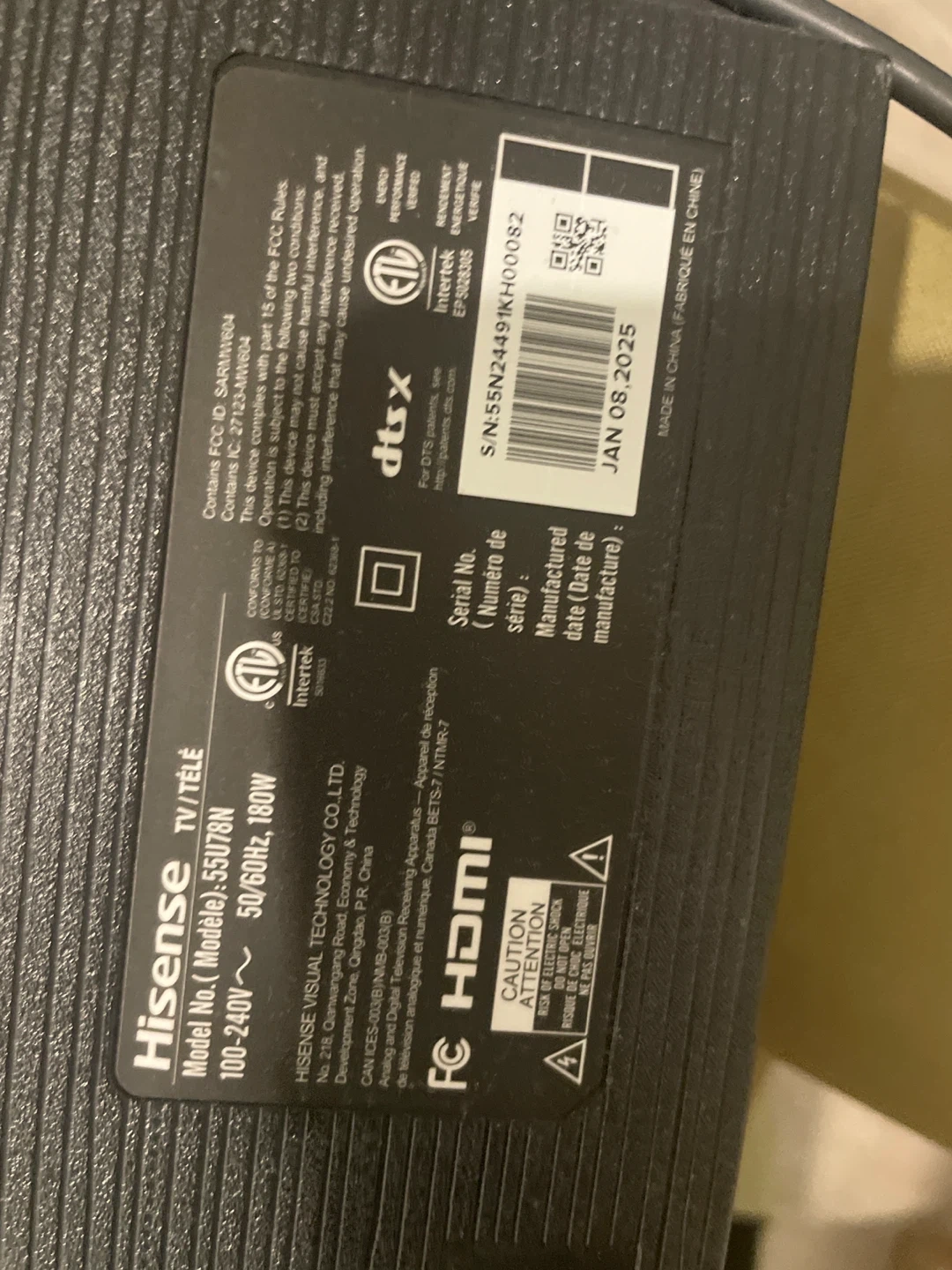 Model number: Hisense 55U78N