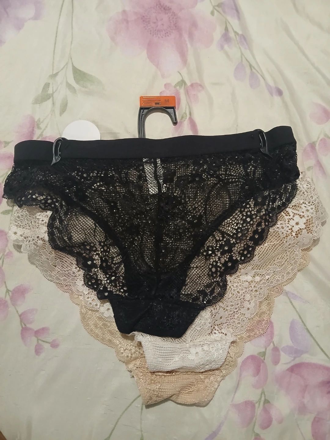 Three pairs of lace underwear