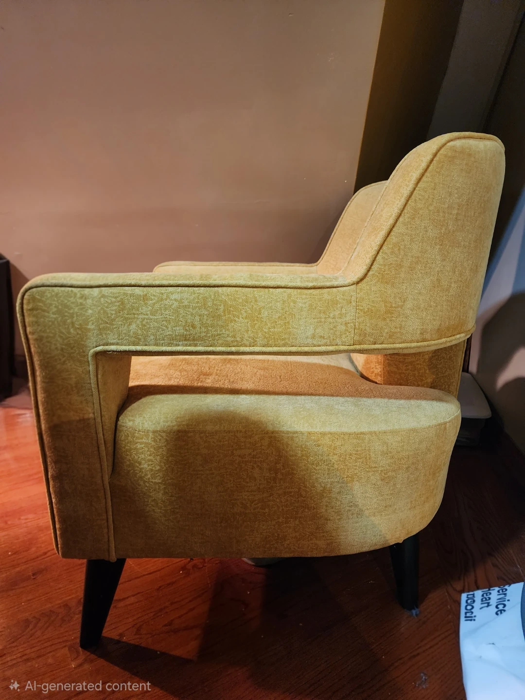 This is a comfortable accent chair upholstered in a textured yellow fabric. It features a modern design with clean lines and supportive armrests. The chair's sturdy build makes it a great addition to any living space.