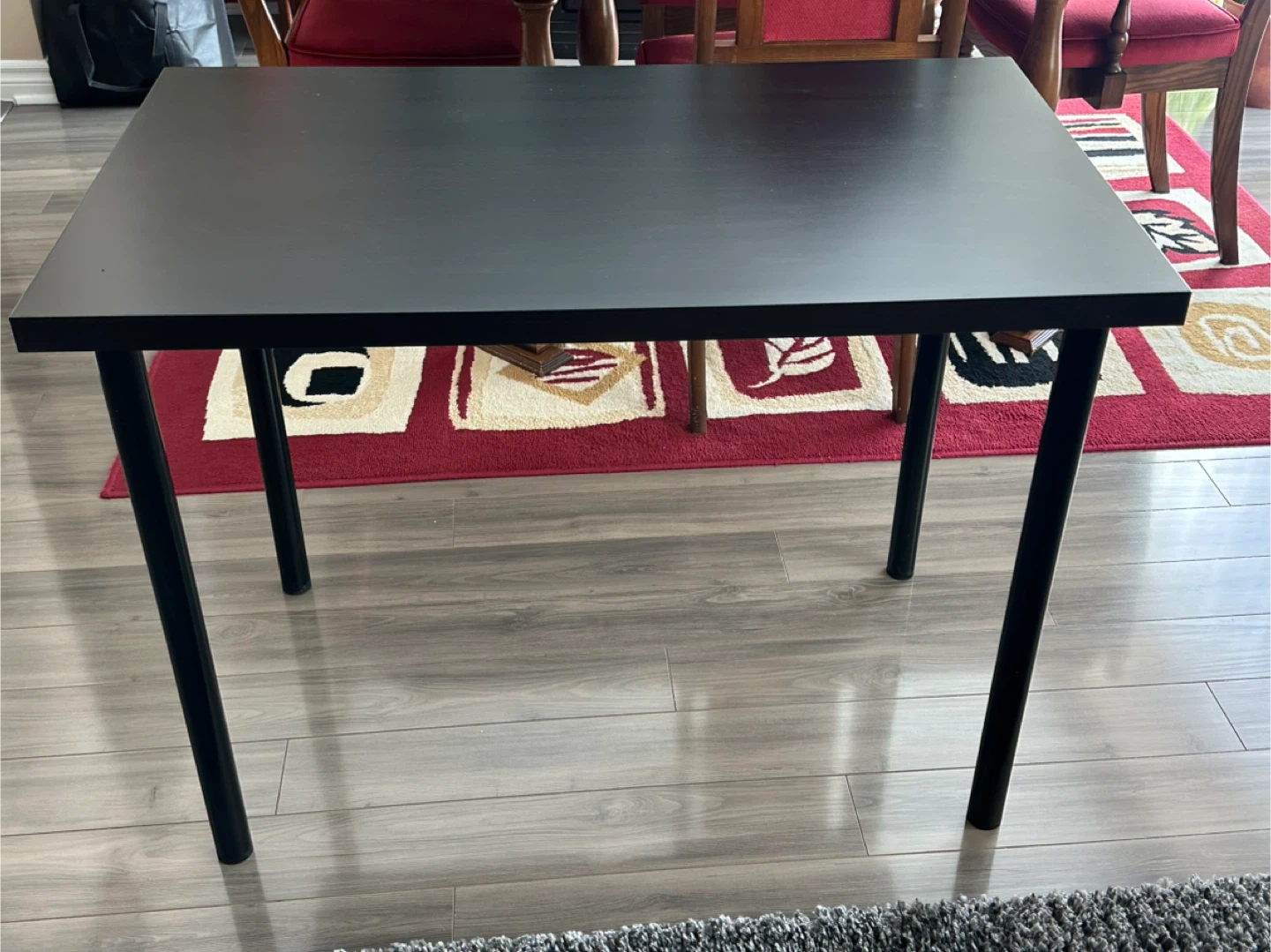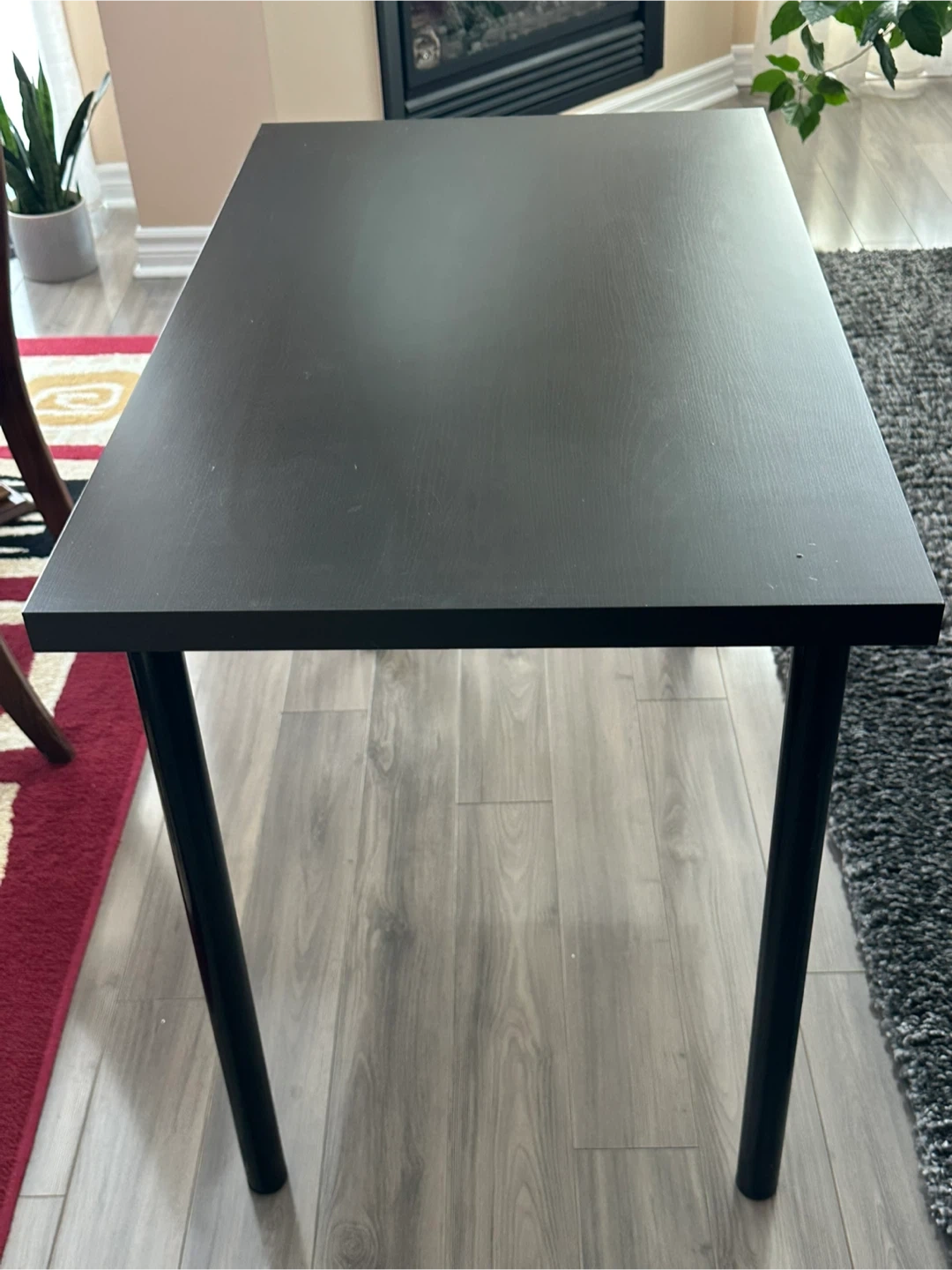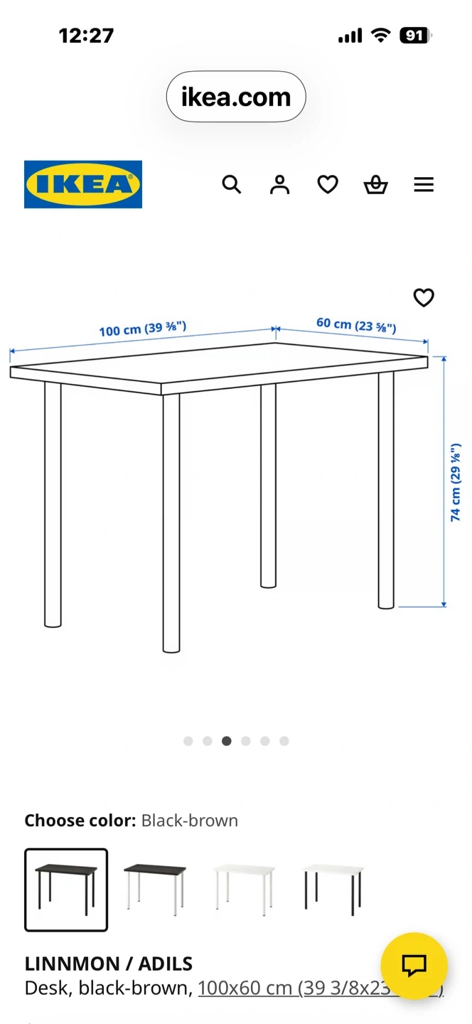 This is an IKEA LINNMON / ADILS desk in black-brown. It's 100cm long and 60cm wide. The table height is 74cm. It's a practical desk for a home office or study space. Convenient little kitchen table for smaller places