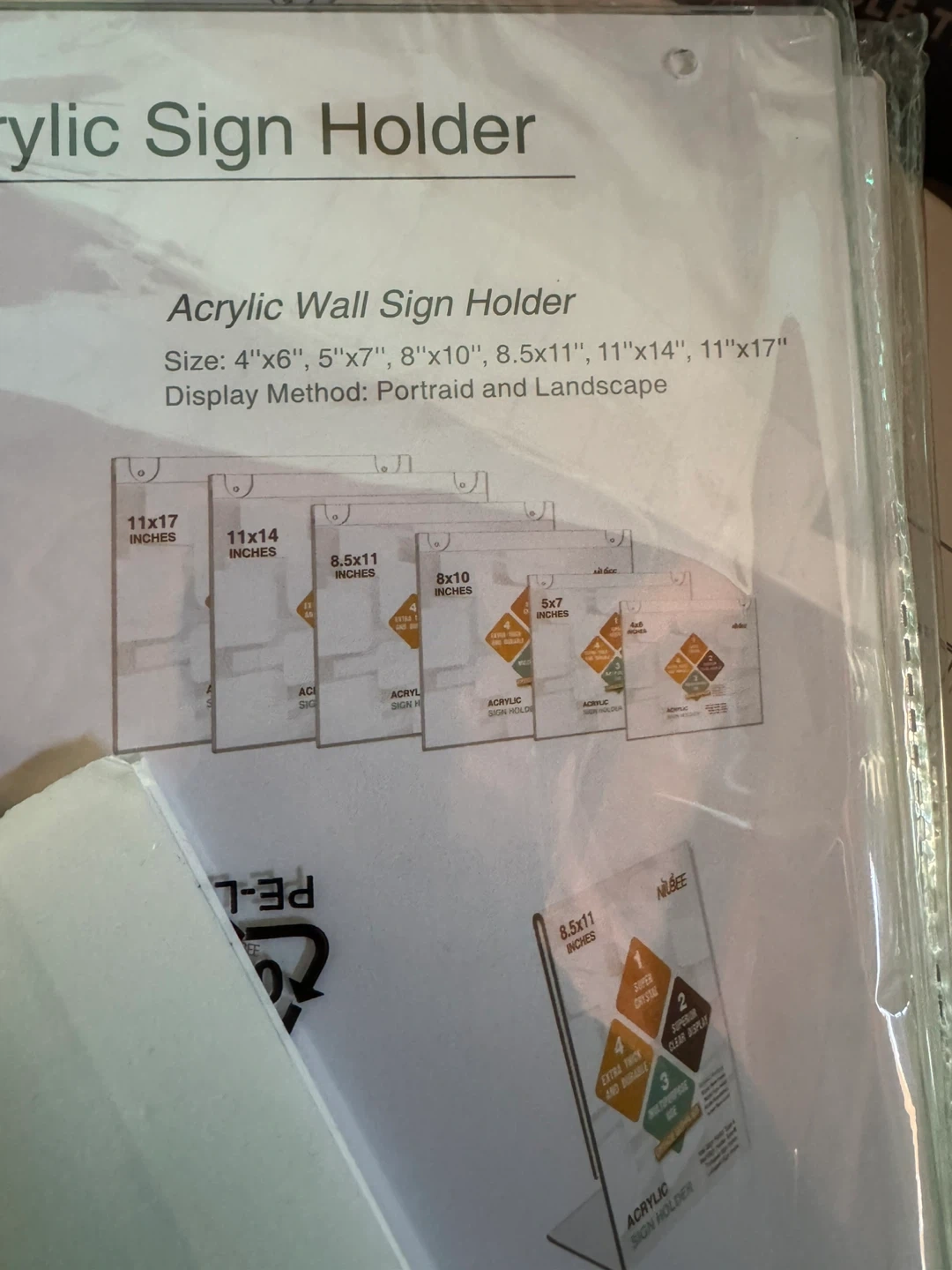 Selling a brand new NIUBEE acrylic wall sign holder! It's size 8.5x11 inches. Perfect for displaying signs in portrait or landscape orientation