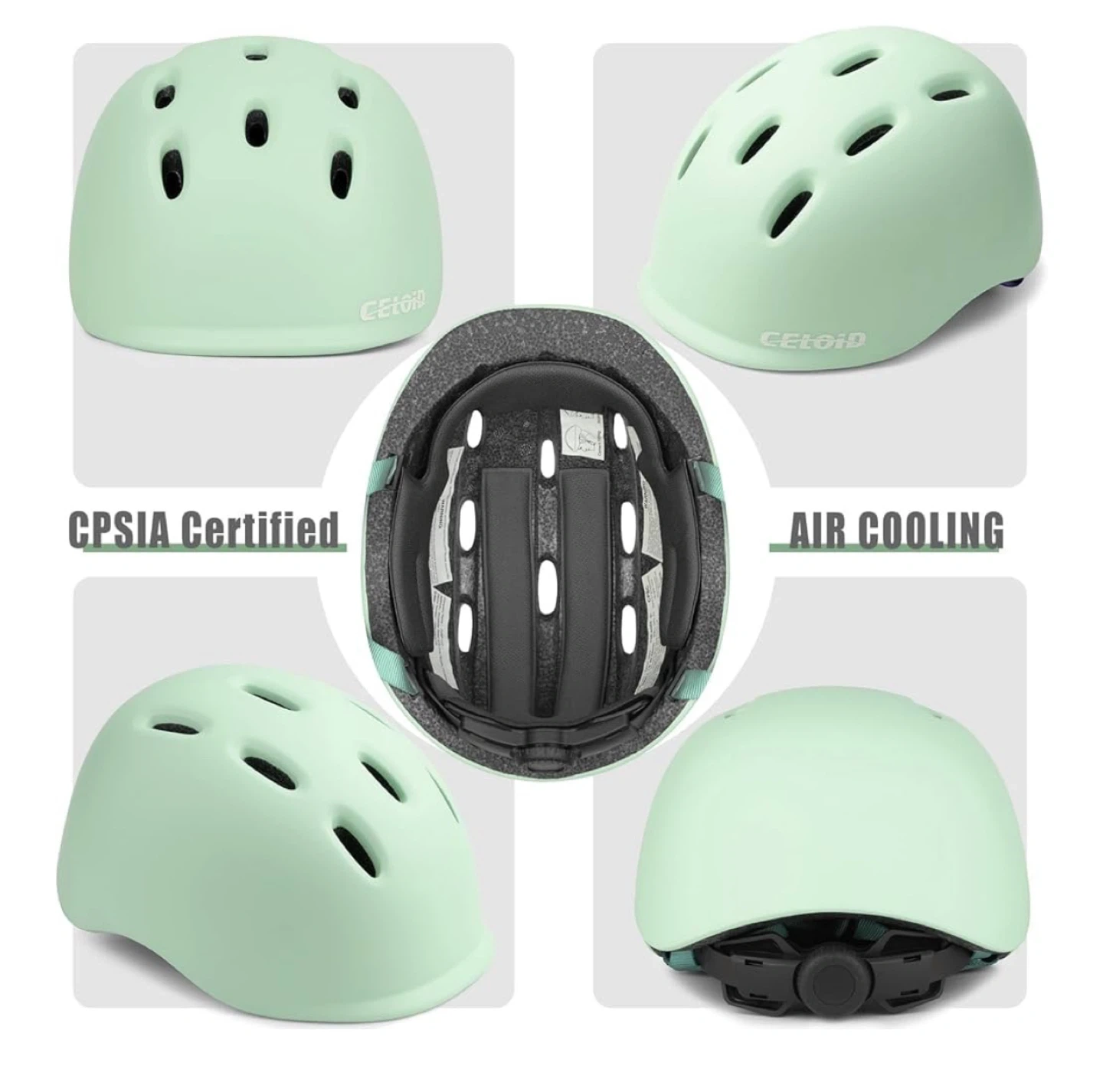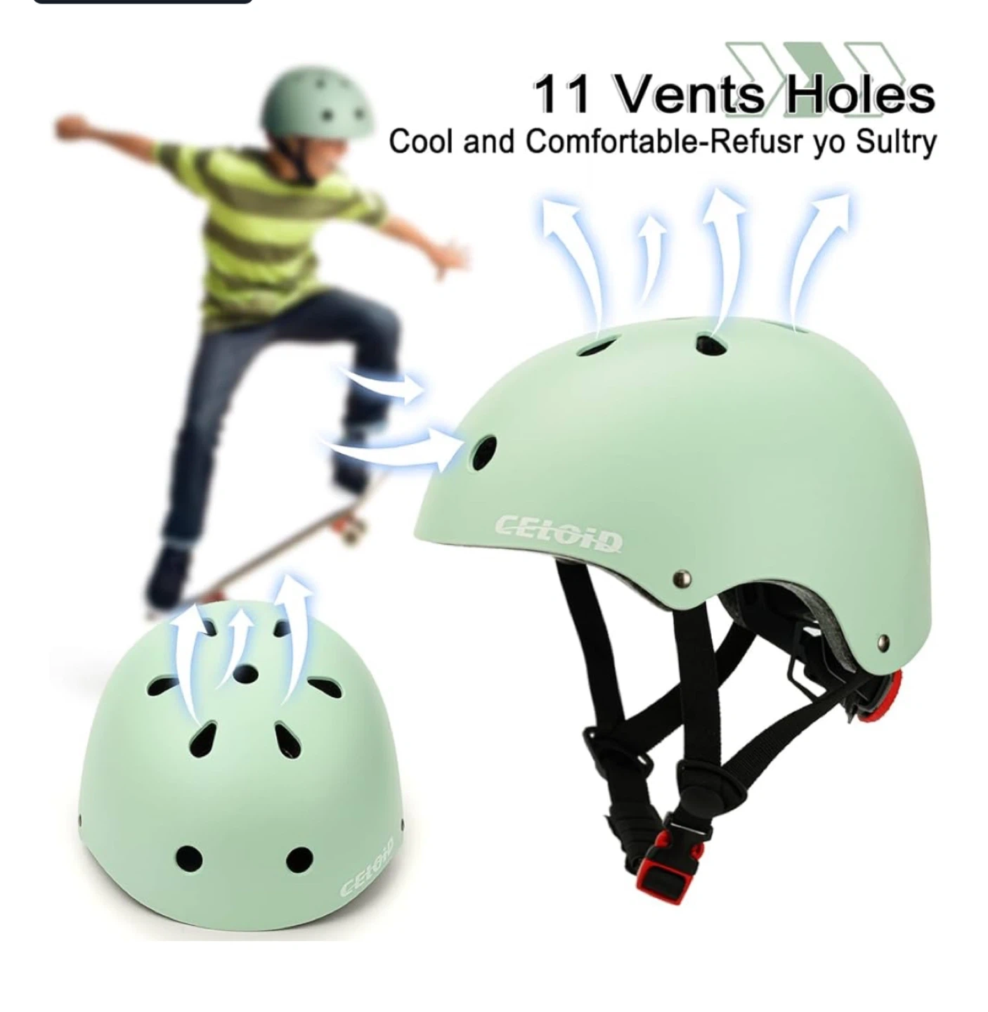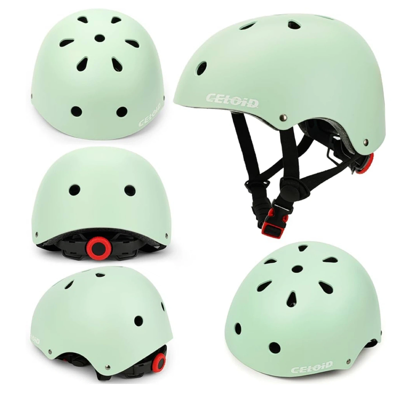This CELOID helmet is perfect for biking, skateboarding, skating, and more! It features 11 vents for cool and comfortable use. The size is small and the color is a refreshing mint green.
