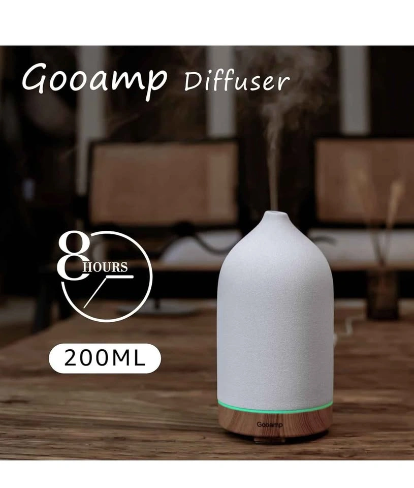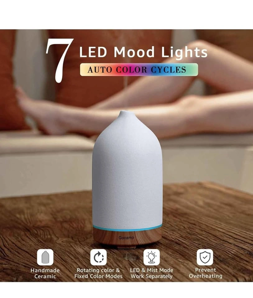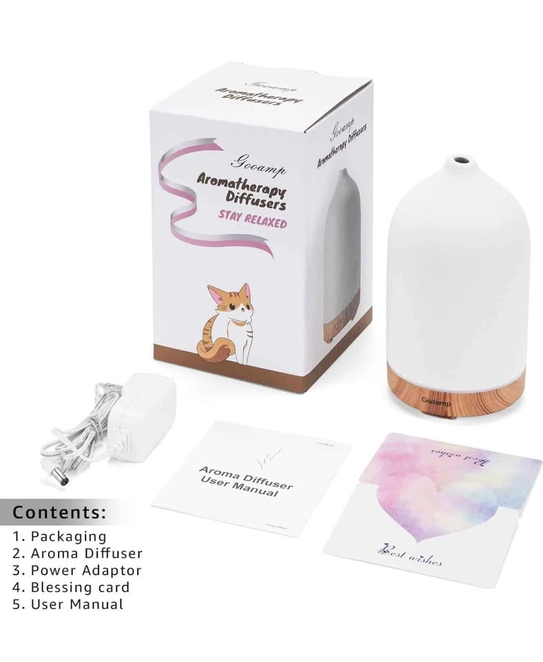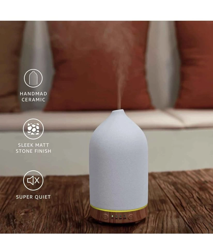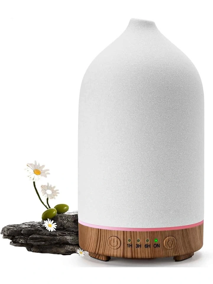 200ML Ceramic Diffuser, Aromatherapy Diffuser, Essential Oil Diffuser with 7 Color Lights Auto Shut Off for Home Office Room, Wood Grain Base (1/3/6/ON hrs Working time)