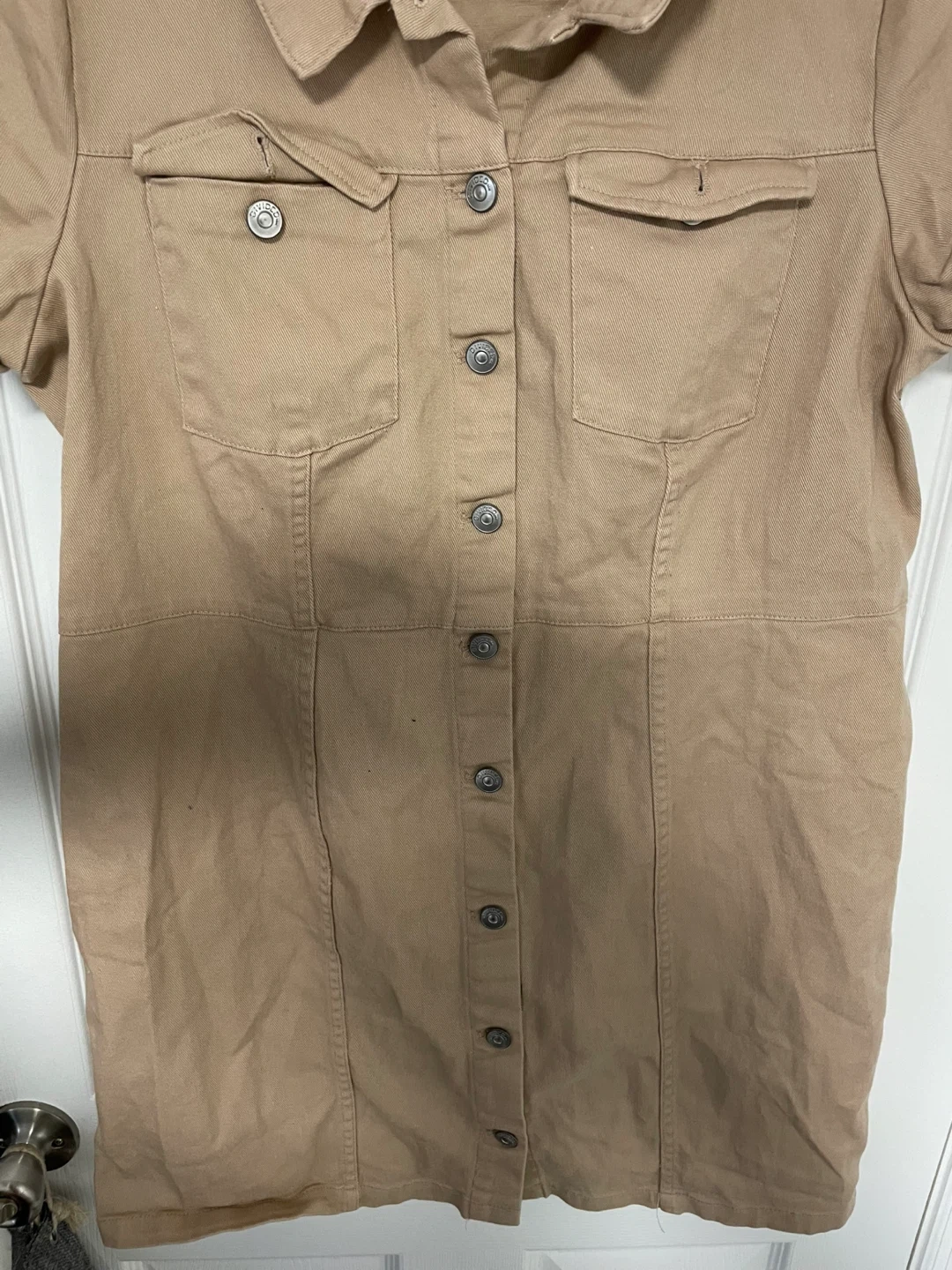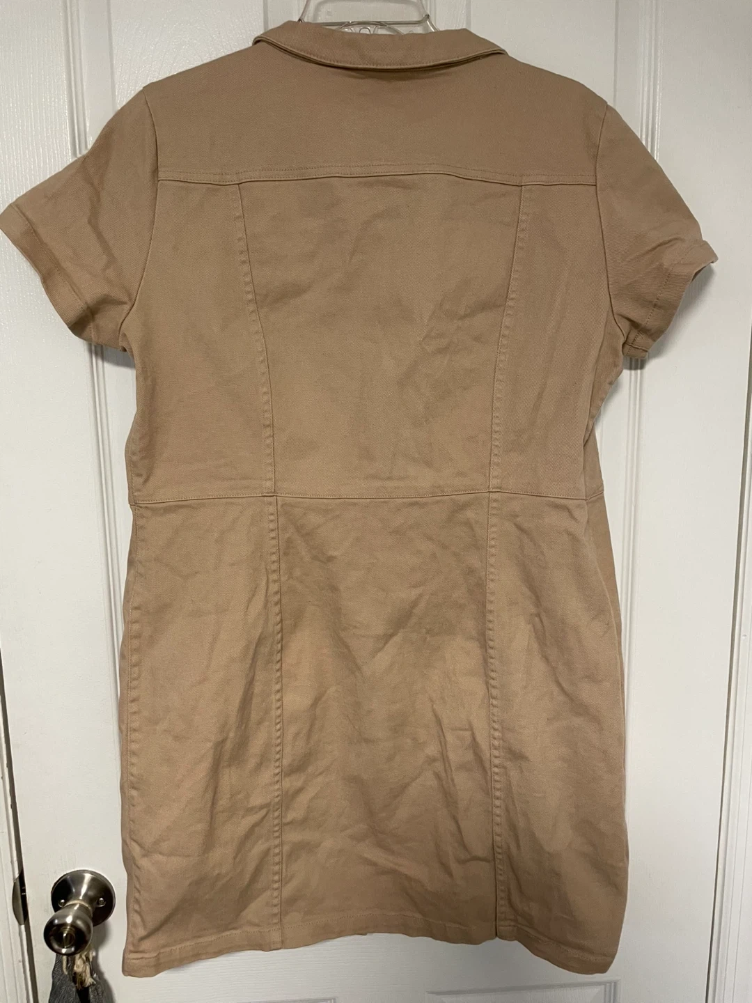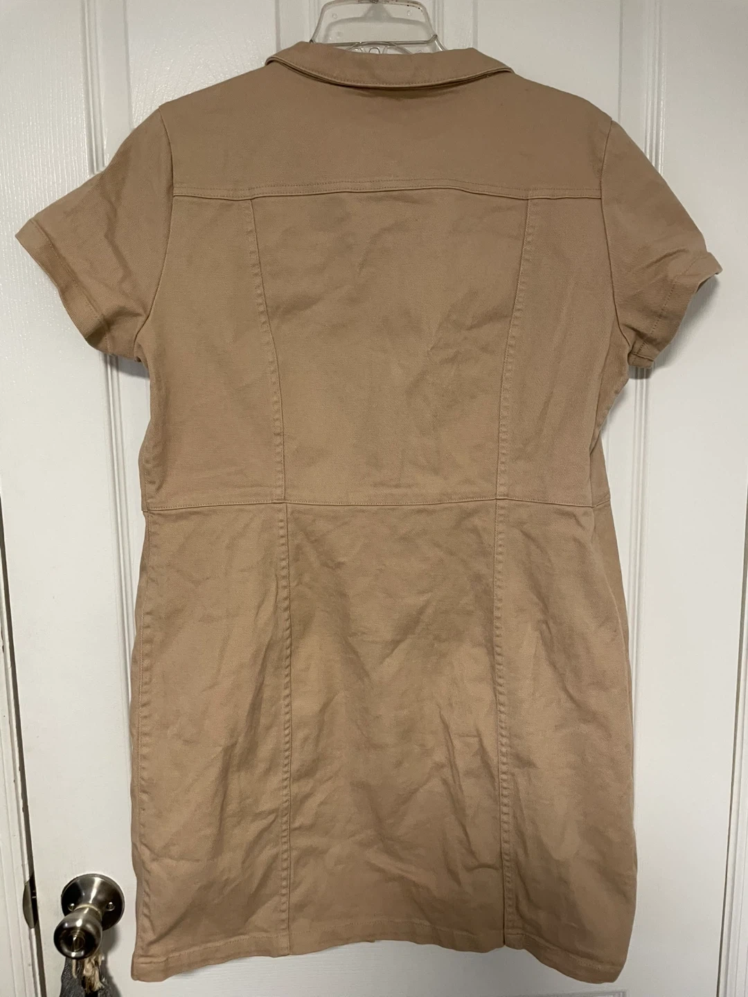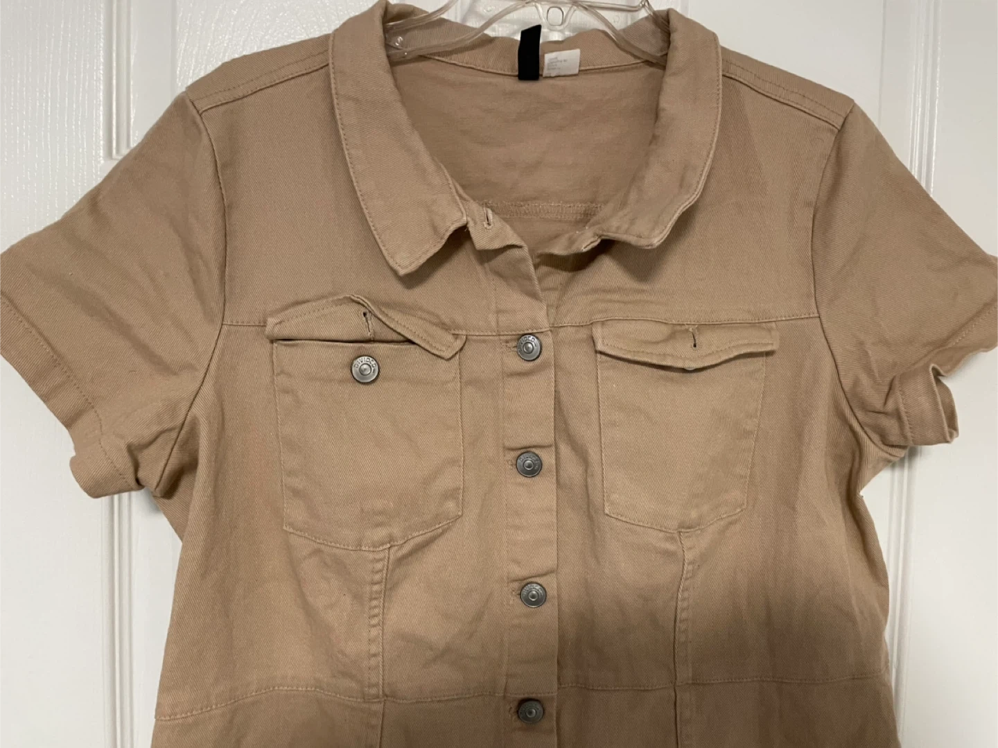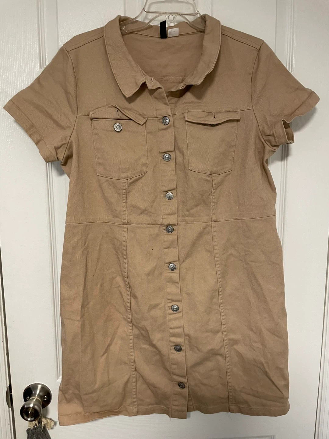 Here's a cute khaki button-down dress from H&M! It's in great condition and Perfect for a casual day out or dressed up with some accessories