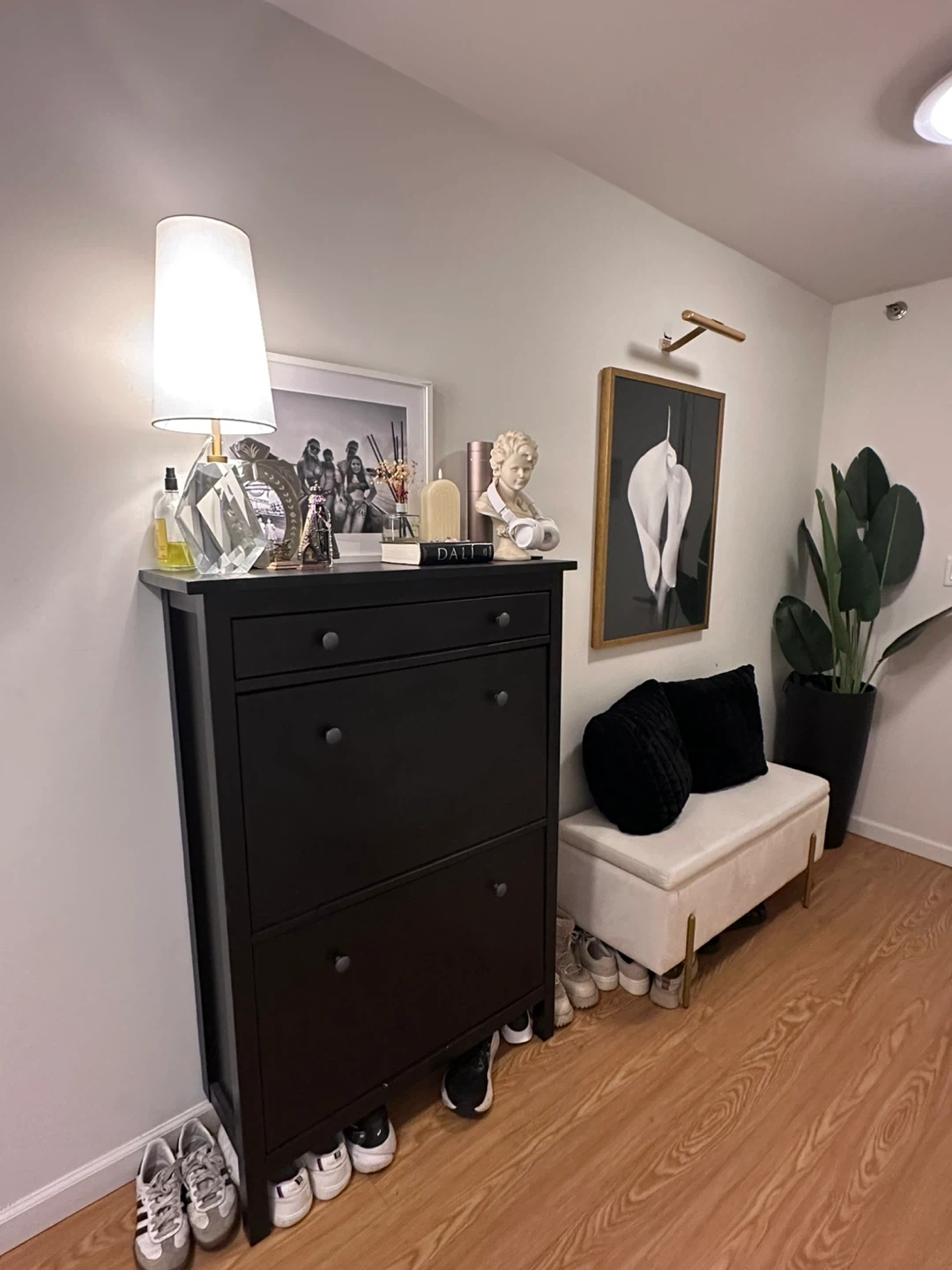 Black Shoe Cabinet with Storage Drawers
