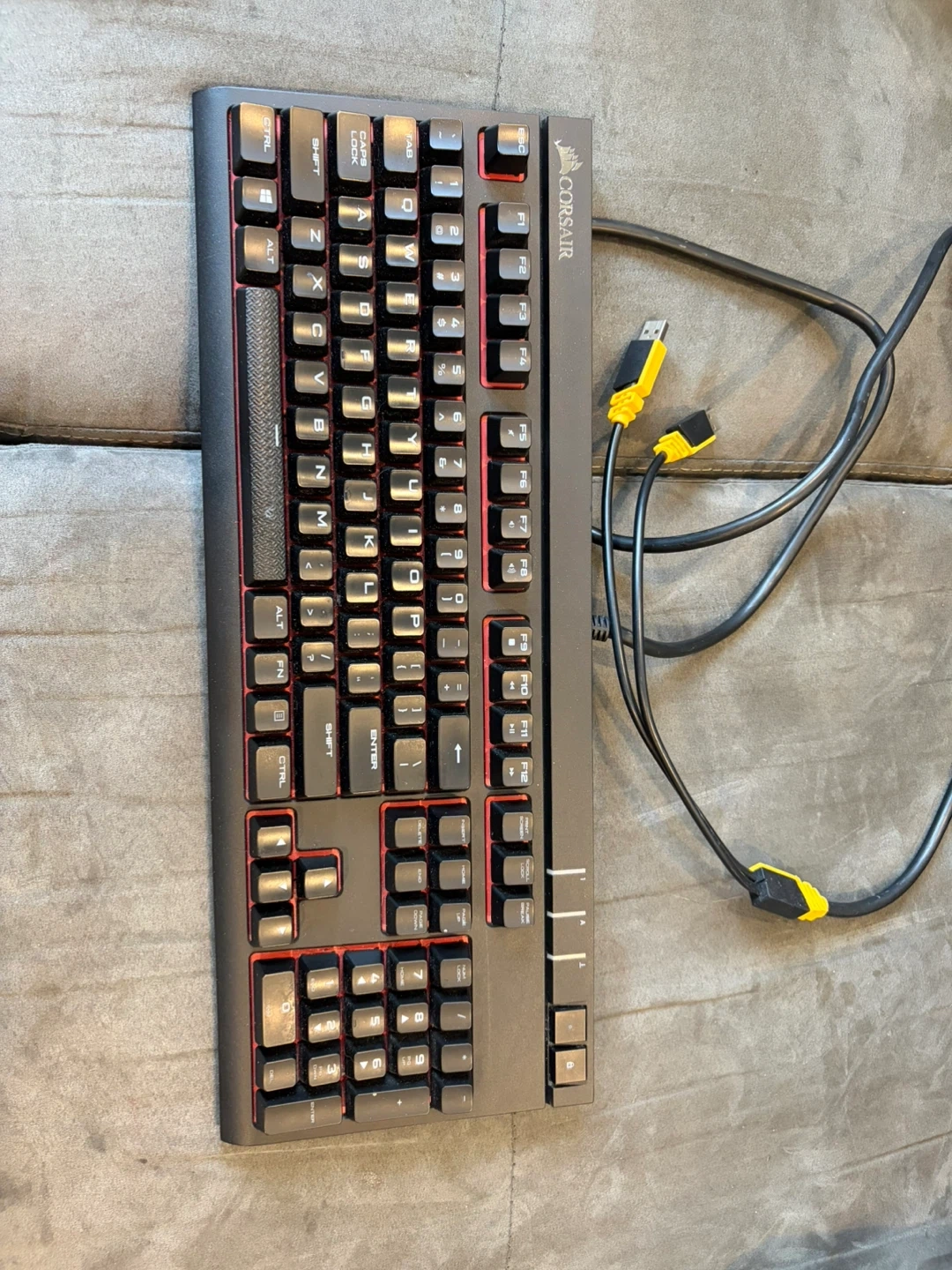 Selling a Corsair gaming keyboard in great condition. It has a sleek design with red backlighting. Perfect for gaming or everyday use!