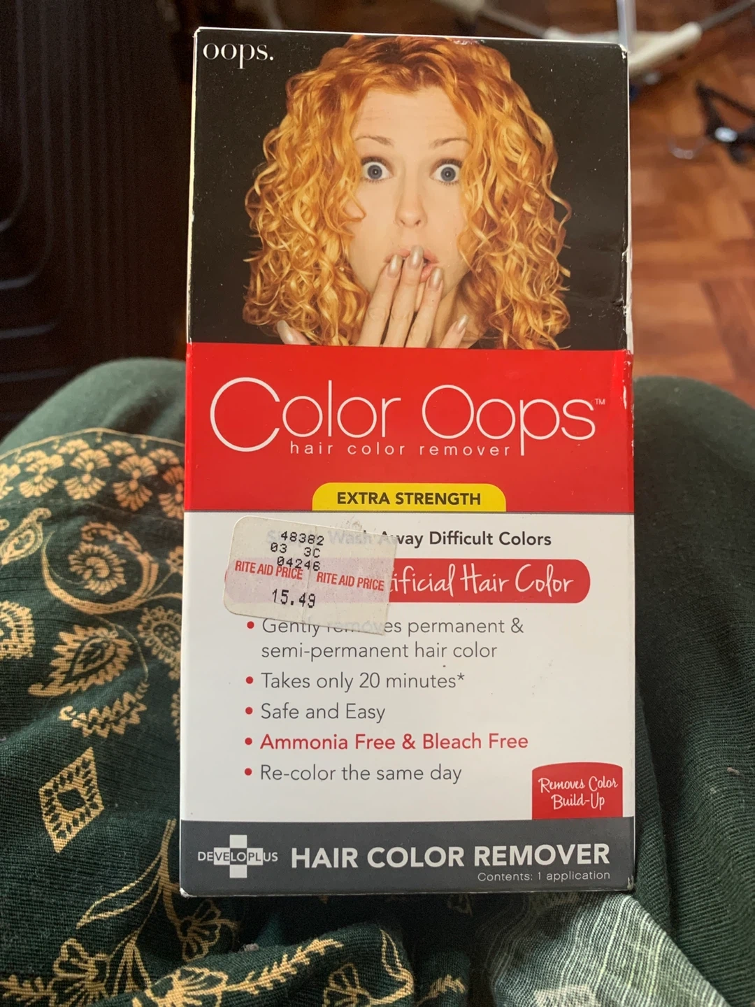 This Color Oops hair color remover is for permanent & semi-permanent hair color. It's ammonia-free and bleach-free. This box contains 1 application.