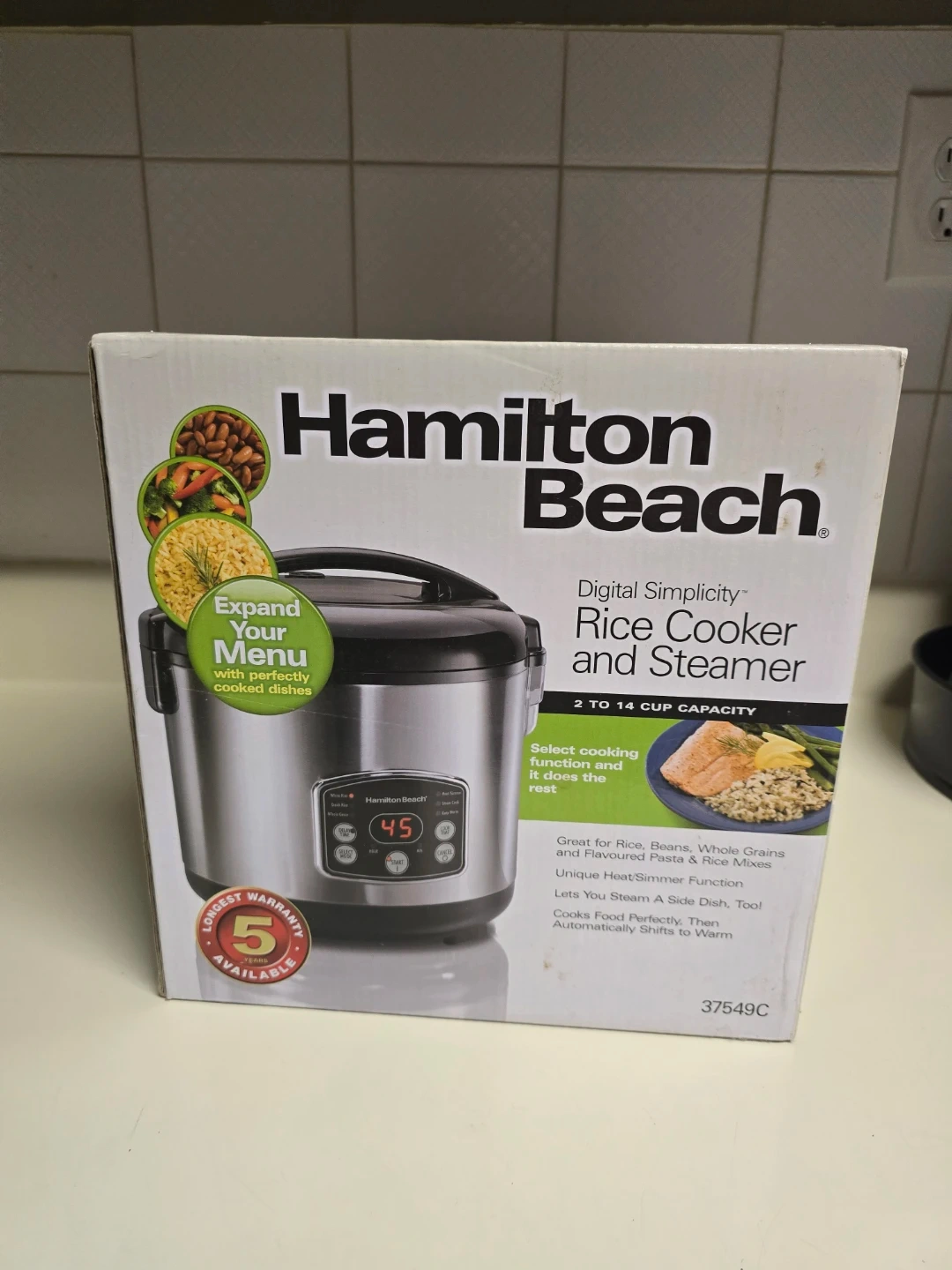 AI: This Hamilton Beach Digital Simplicity Rice Cooker and Steamer has a 2 to 14 cup capacity. It offers select cooking modes and a keep warm function. Cooks food reachy and automatically shifts to warm.