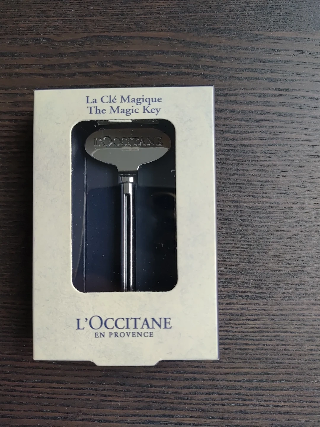 This is L'Occitane's The Magic Key, a clever accessory to help you squeeze every last bit of your favourite cream out of the tube. It's made from zinc alloy and aluminium.
