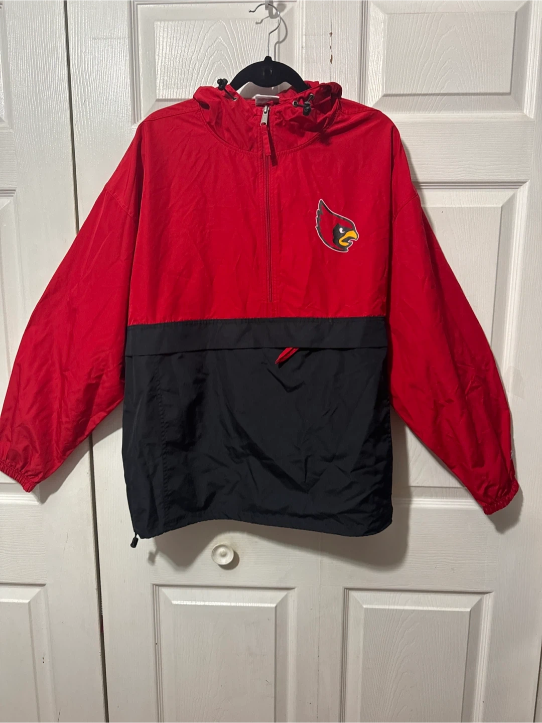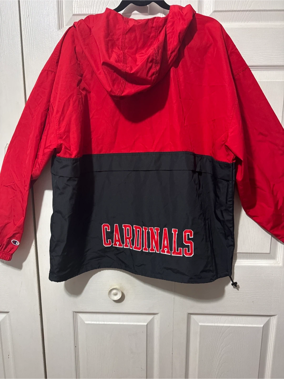 Selling a Champion Cardinals pullover jacket in size XXL. It's red and black with the Cardinals logo. Great for showing your team spirit!