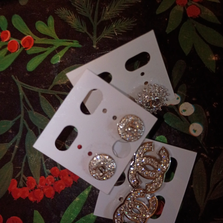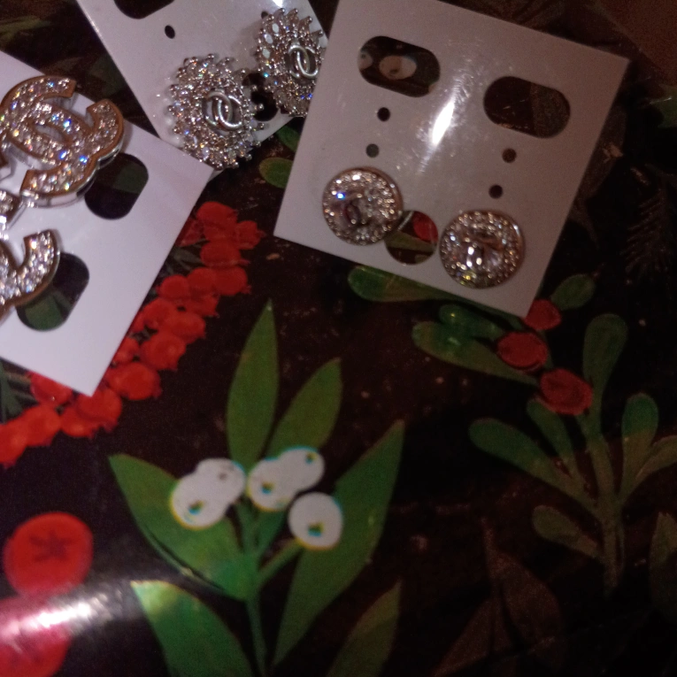 10three pairs of Chanel encrusted earrings small medium and semi large. option to sell separate. 20$ 50$ 50$
