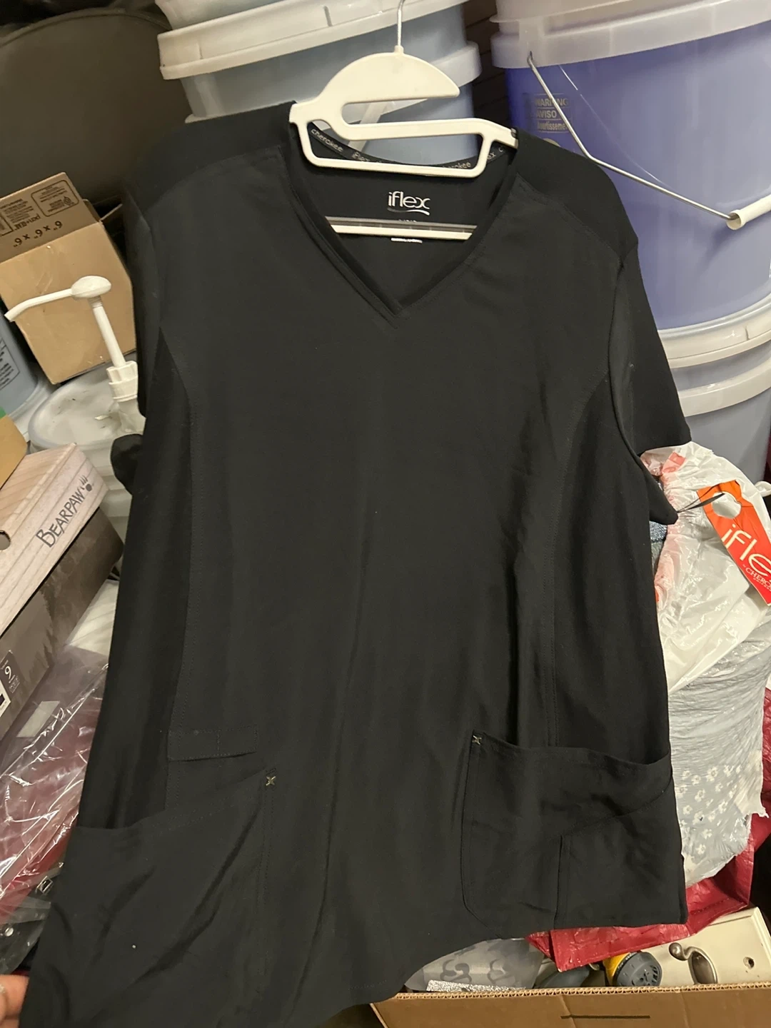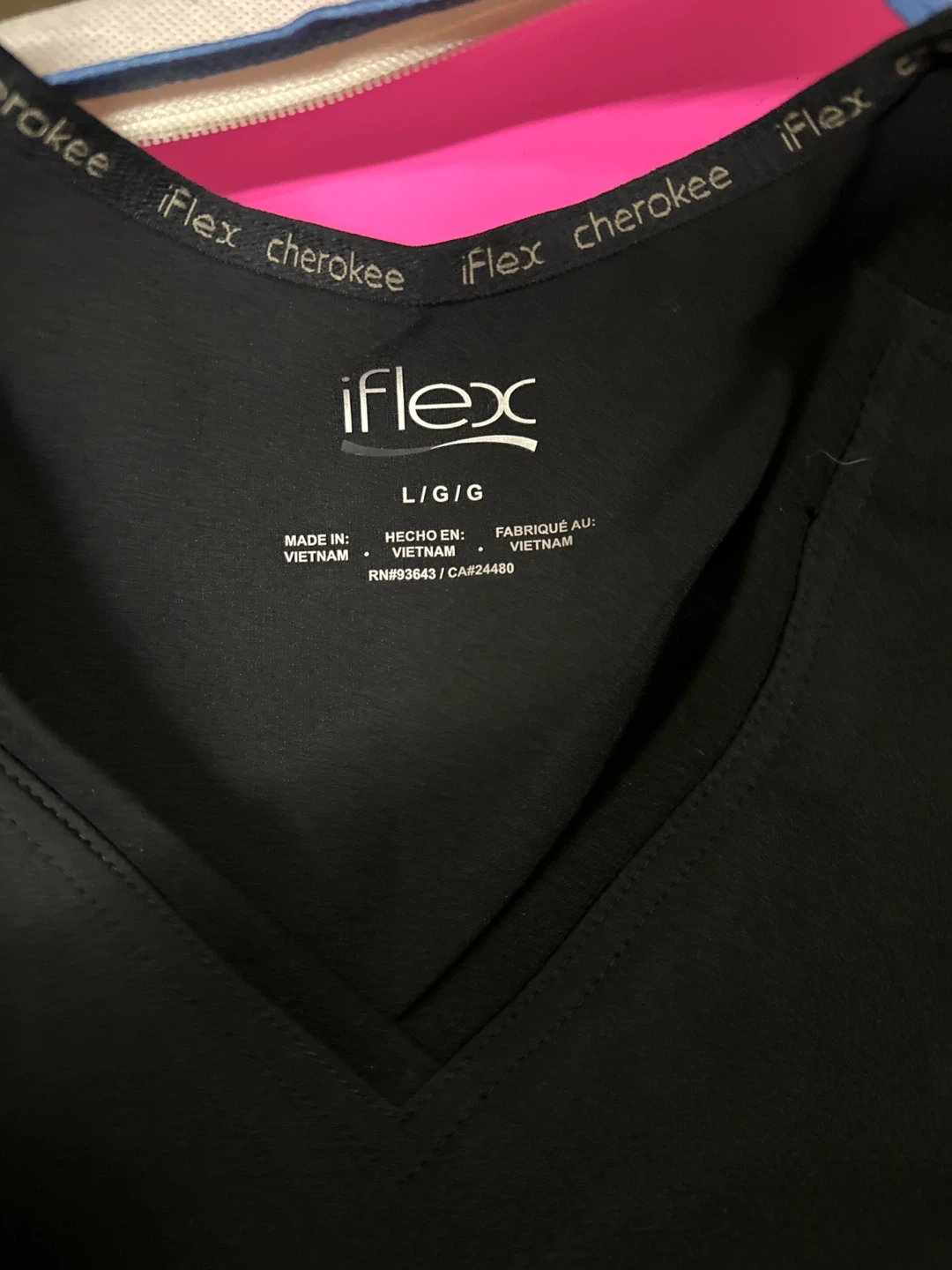Selling a Cherokee iFlex scrub top in black, size large. It's in great condition and ready for a new home