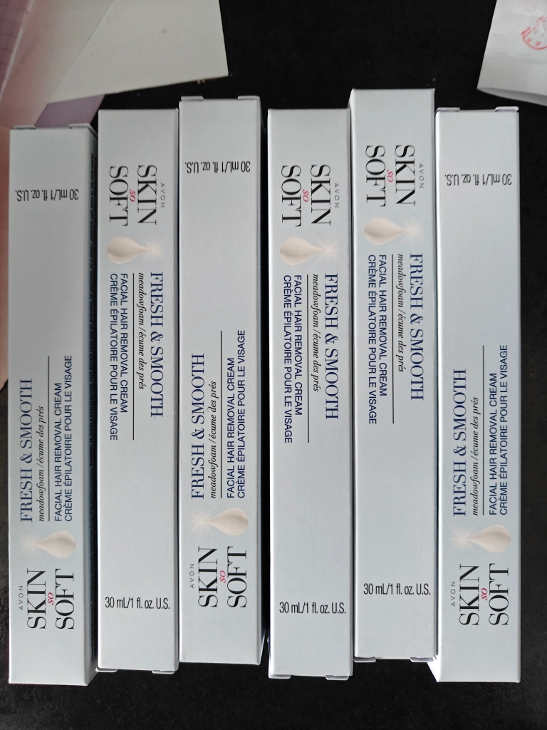 Five tubes of Avon Skin So Soft Fresh & Smooth facial hair removal cream. Meadowfoam formula. 30ml/1 fl oz each.