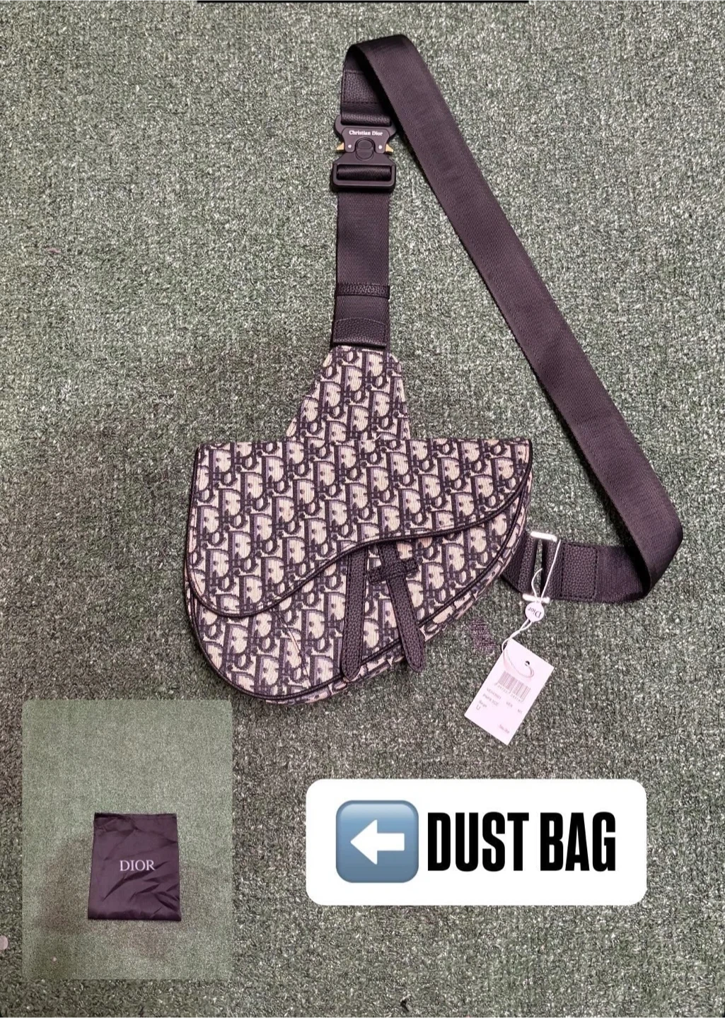 10This is a Christian Dior Saddle Bag in Oblique Jacquard. It features a unique design and comes with a dust bag to keep it protected when not in use. It's a stylish and eye-catching bag! BRAND NEW WITH DUST BAG