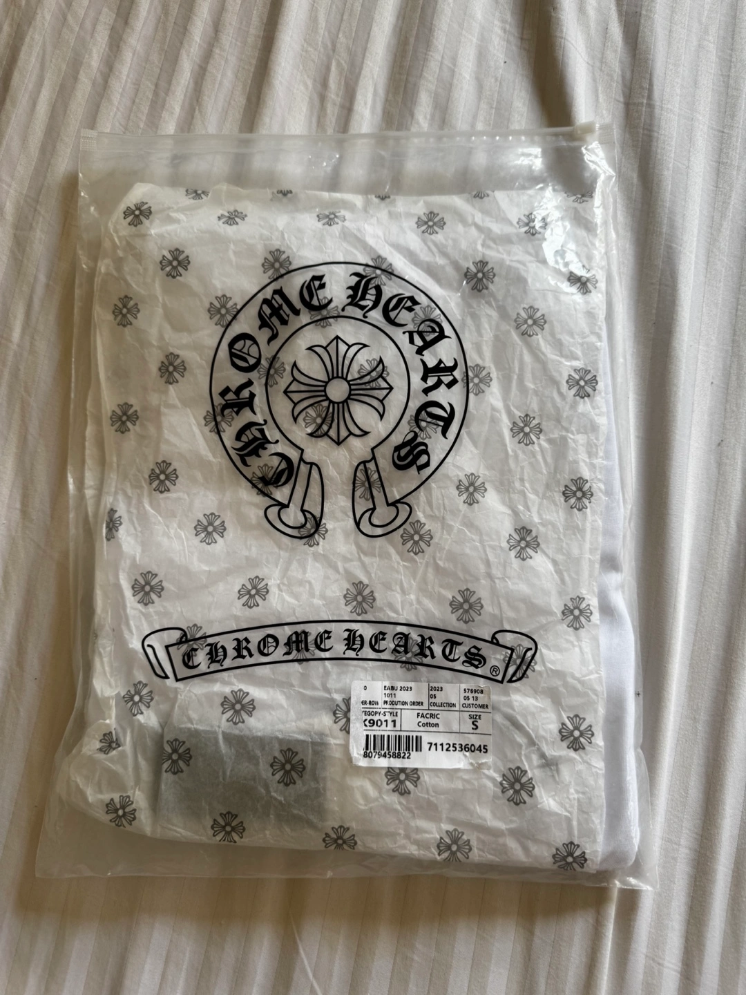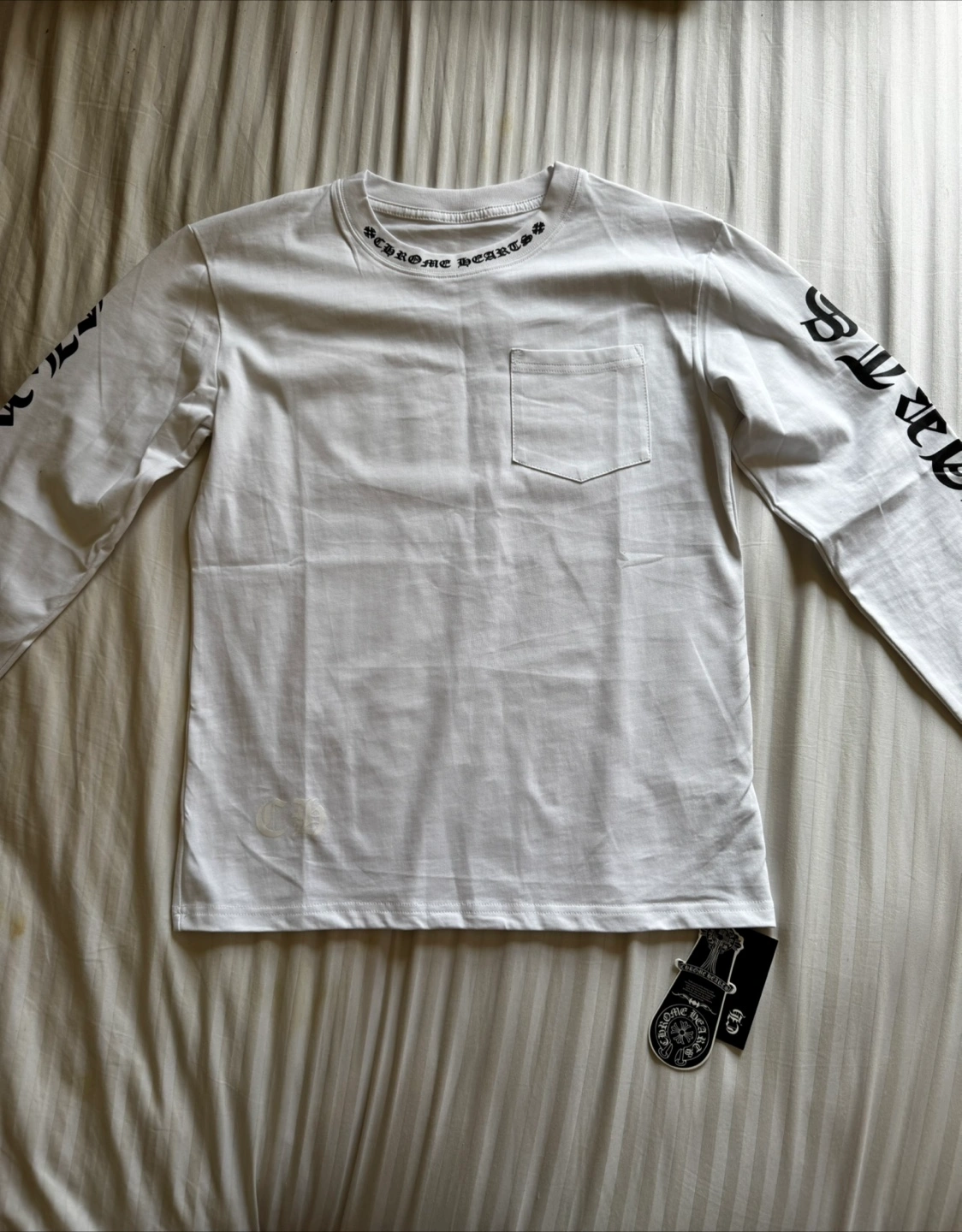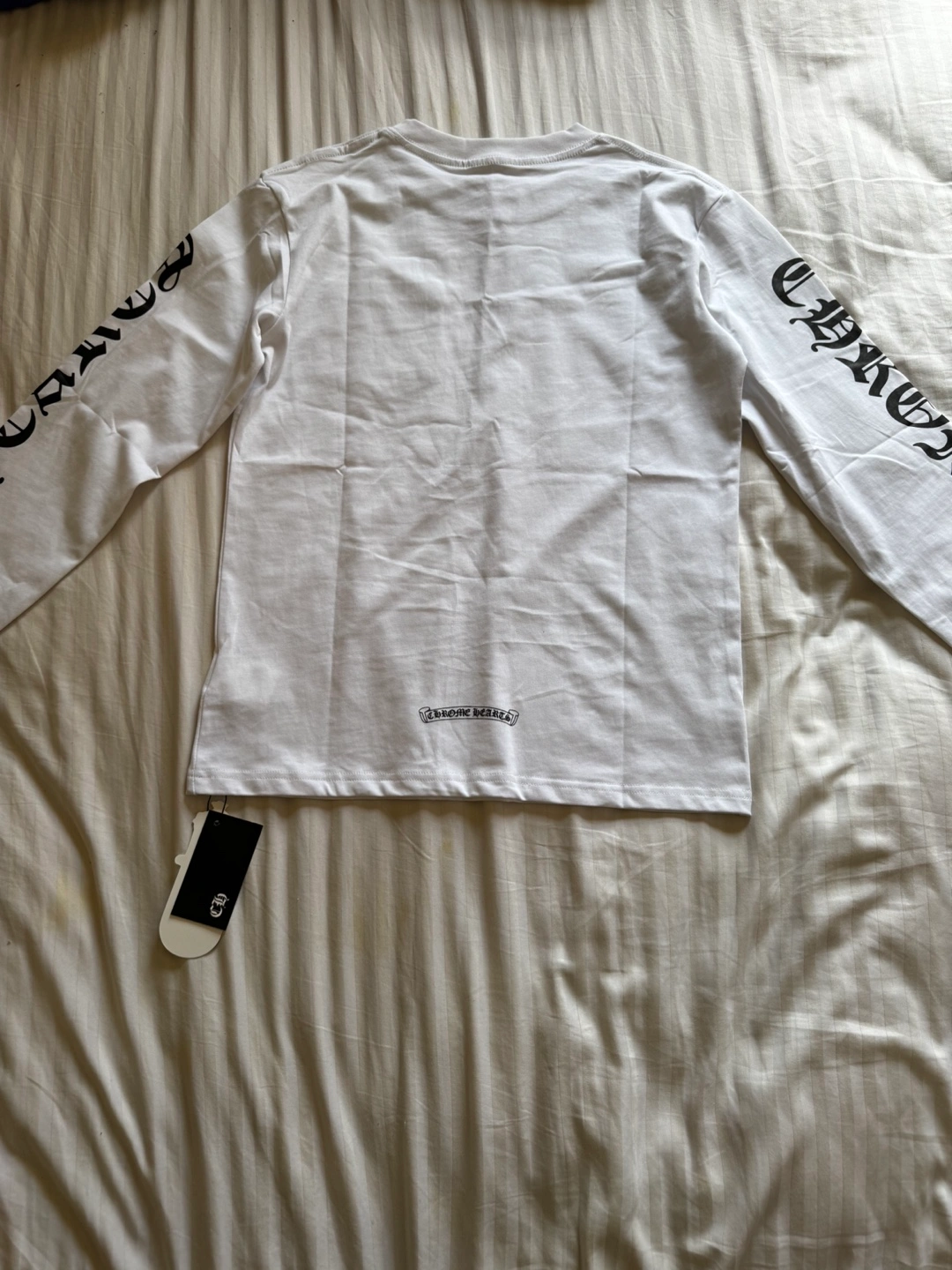 This is a brand new Chrome Hearts long sleeve shirt in white. It's a size small and comes with its original packaging