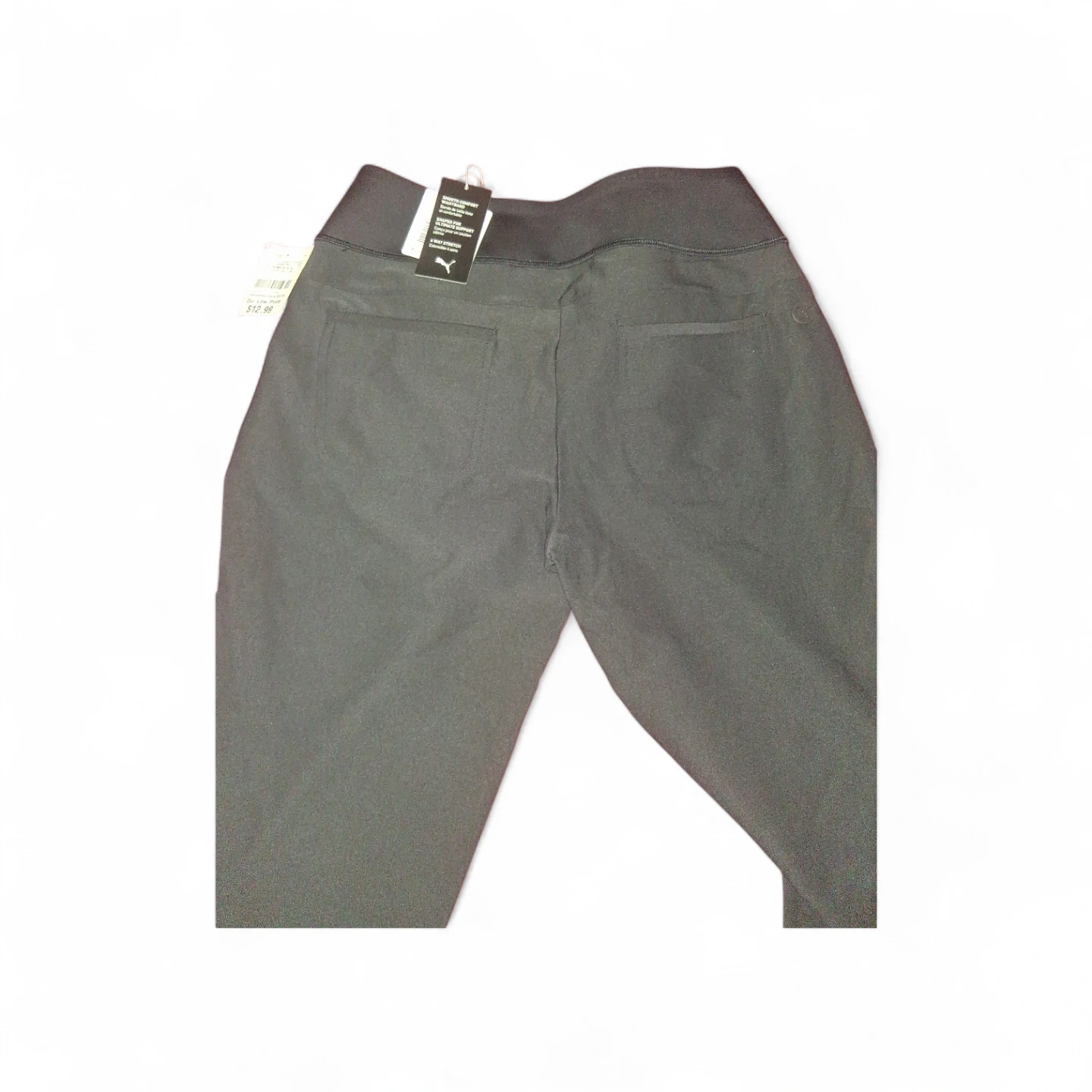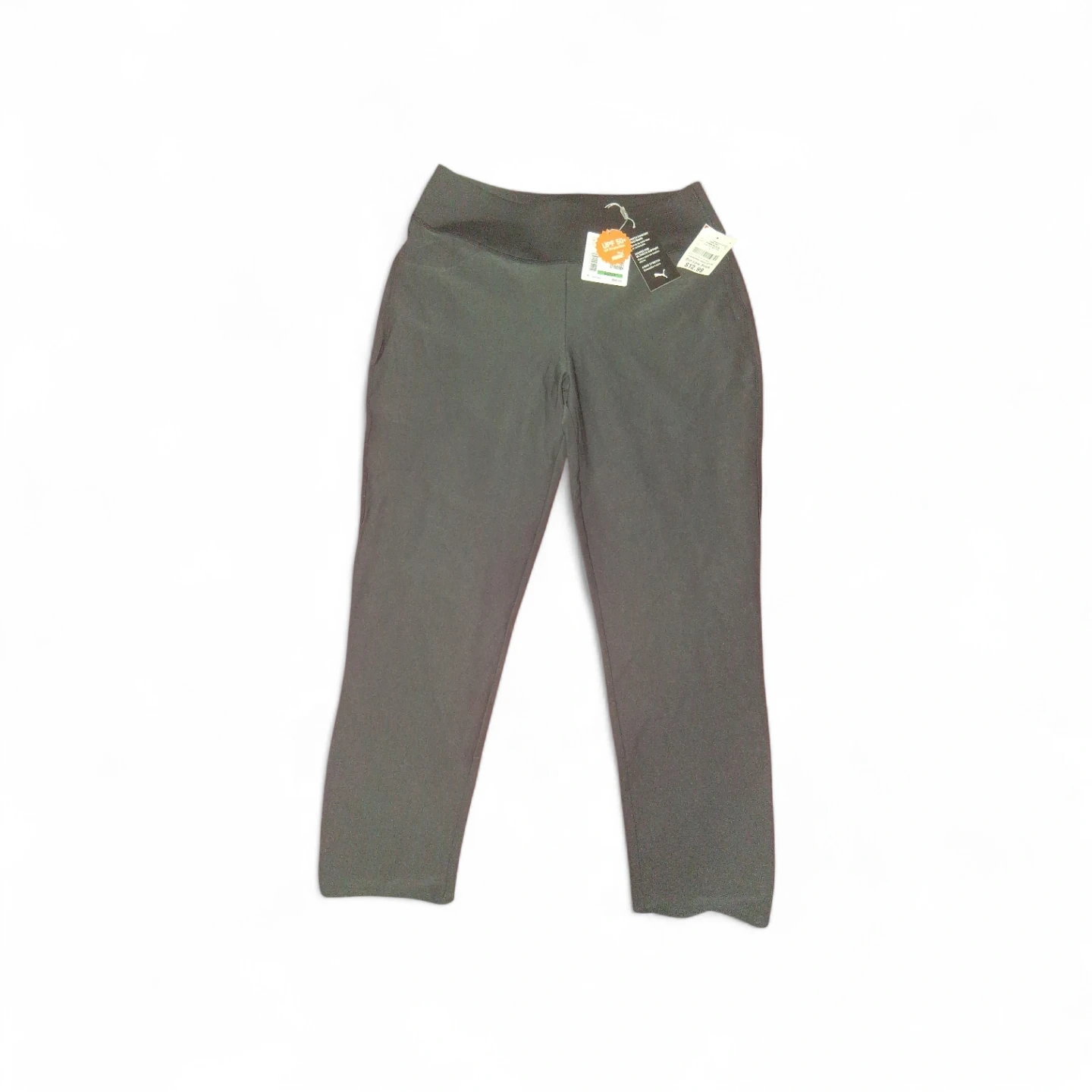 These Puma leggings are black and have a comfortable fit. They're made with a stretchy material for ease of movement. They feature a wide waistband and pockets. Perfect for workouts or casual wear! Both size Large