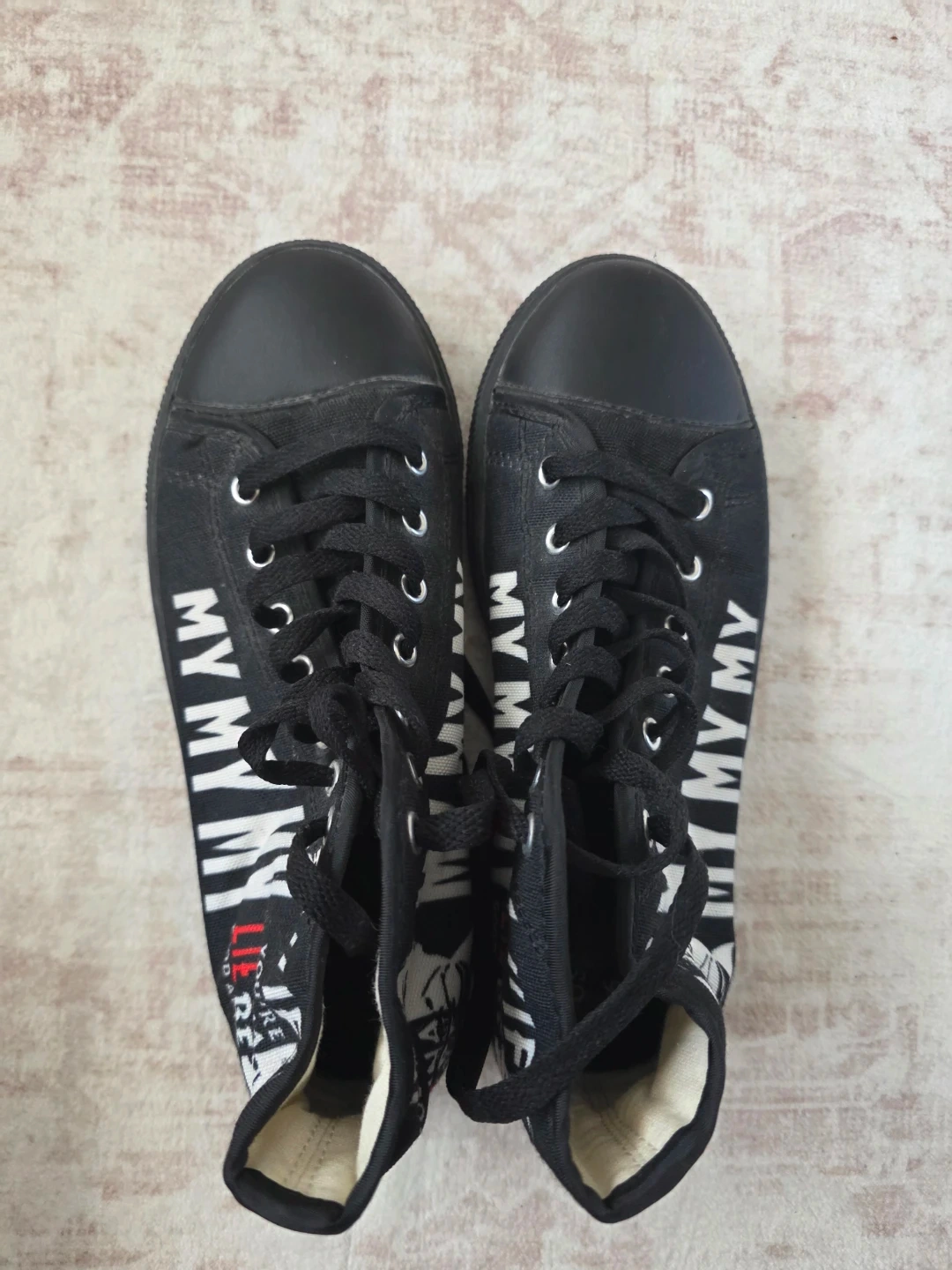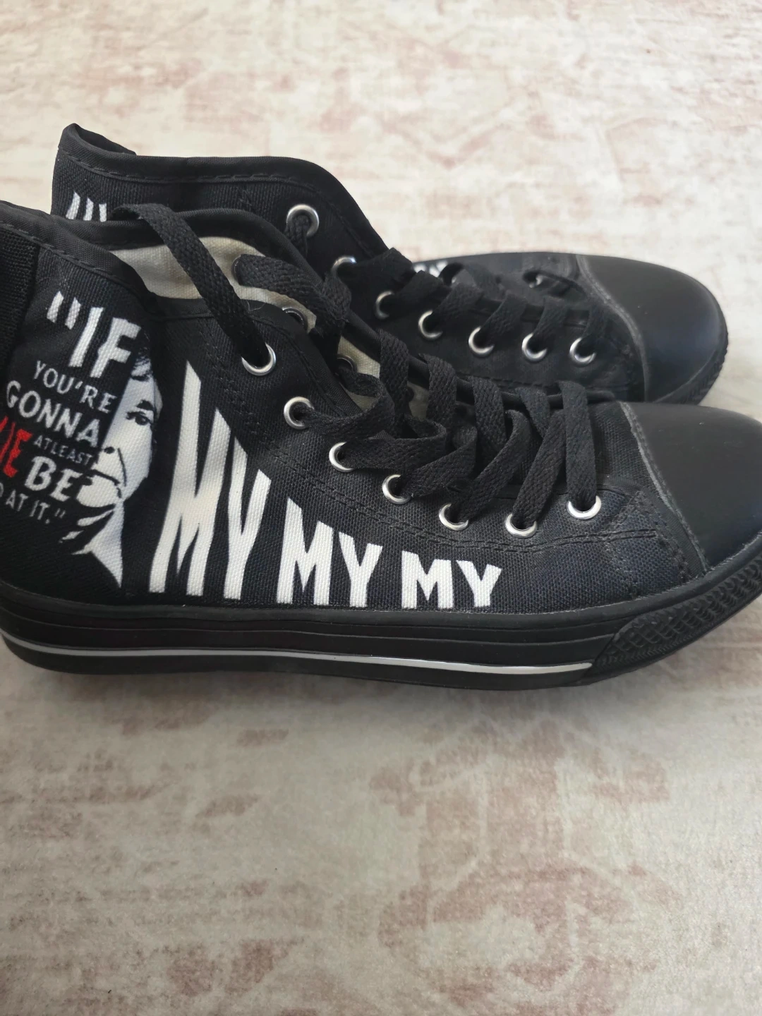 Buy & SellBlack High-Top "MY MY MY" Canvas SneakersBlack High-Top "MY MY MY" Canvas Sneakers$49Black canvas high-top sneakers with a "MY MY MY" graphic print. Lace-up closure. Rubber sole.ConditionNewSize6WHERE TO MEETCheck LocationView MapSELLERLizCorona797 reviews0 chats·0 favorites·6 viewsSEND CHAT TO SELLERHi Liz! I’m interested in your listing.Hi Liz! I’m interested in your listing.Get the Karrot app to chatSign In to chat