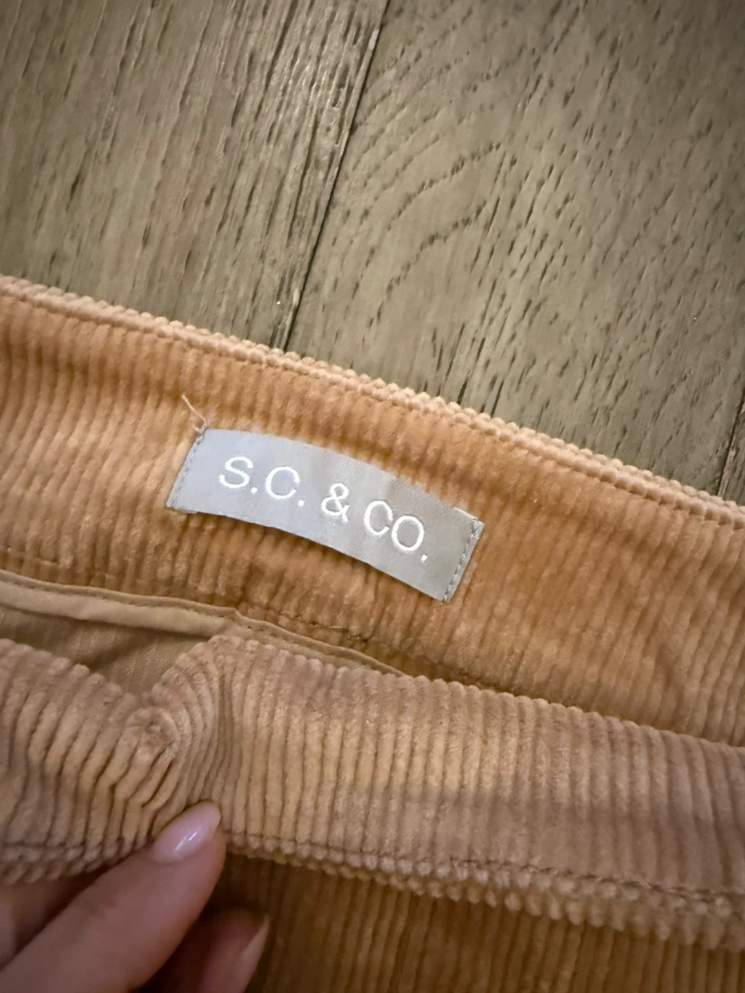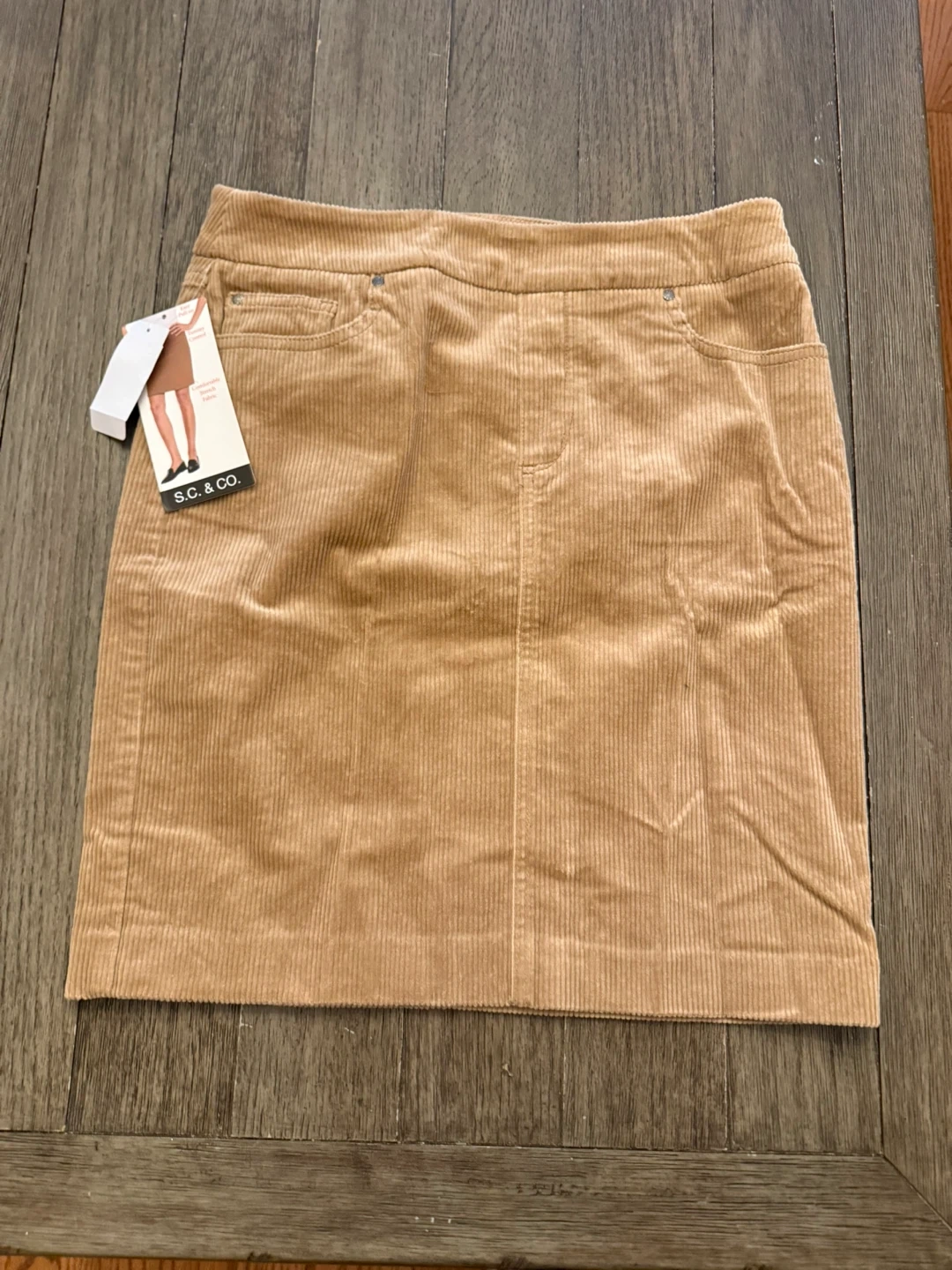 S.C. & CO. corduroy skirt in a lovely tan colour. This skirt is made of a soft corduroy material and would be great for fall or winter. It's in excellent condition!