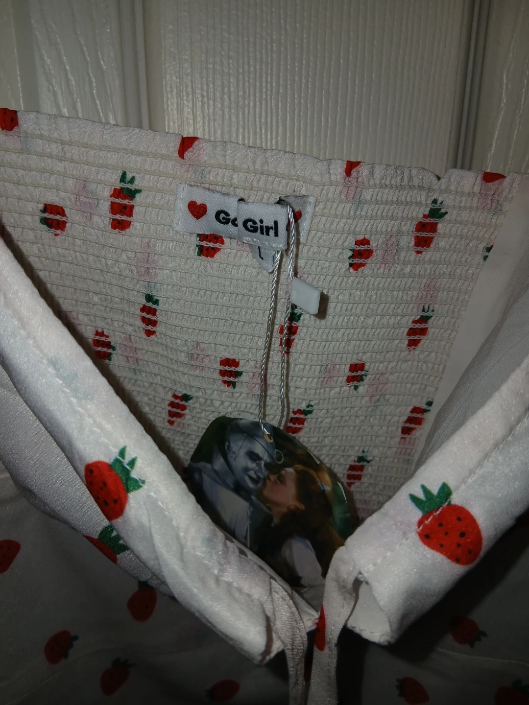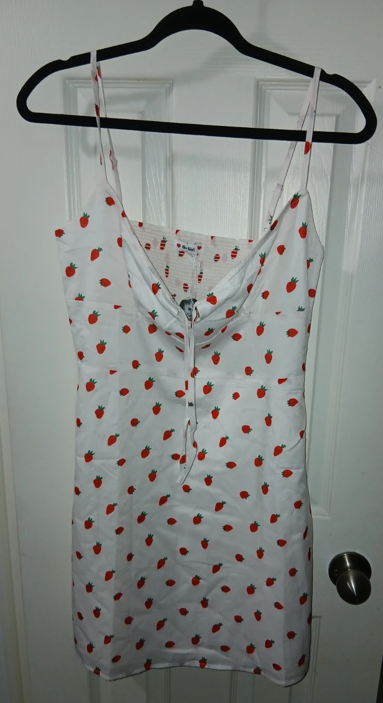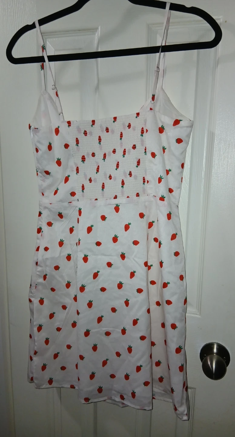 White mini dress with a fun all-over strawberry print. It features adjustable spaghetti straps and a smocked back panel for a comfortable fit. Material is lightweight and perfect for warmer weather! Pickup Locations: - Yonge St. & Dundas St. (H&M) - Dundas St. East & Parliament St. (FreshCo) - Carlton St. & Parliament St. (CIBC Bank) *Check out my other listings* Buy 2 Get 1 Free (Equal or Lesser Value)‼️