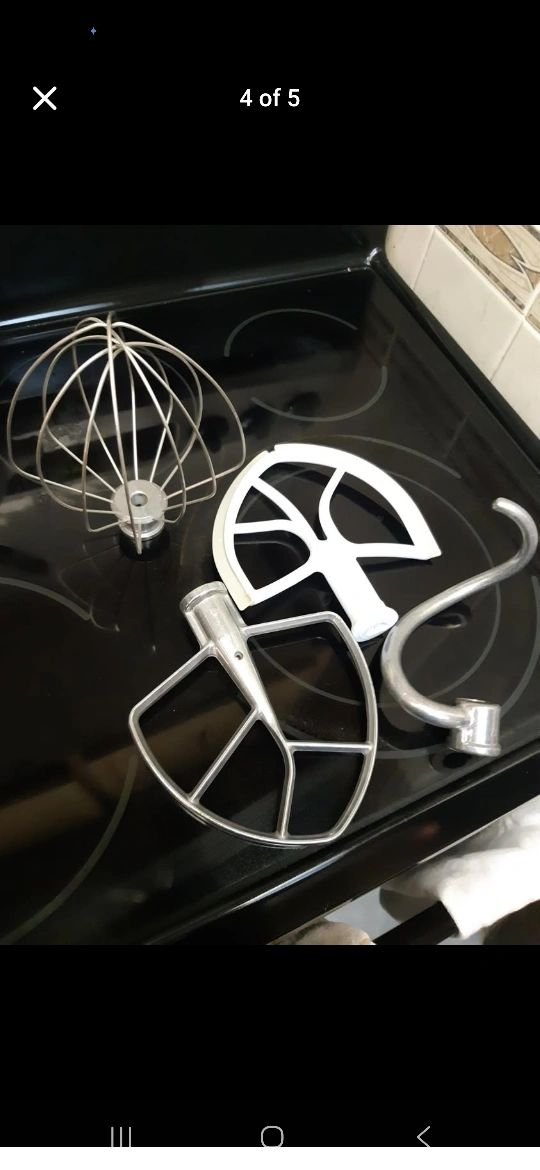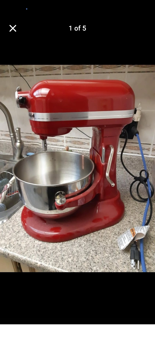 Selling a KitchenAid stand mixer in red! It comes with various attachments as pictured, including a whisk, dough hook, and flat beater. Model number is KL26M1XER. It's in great condition and ready for all your baking needs