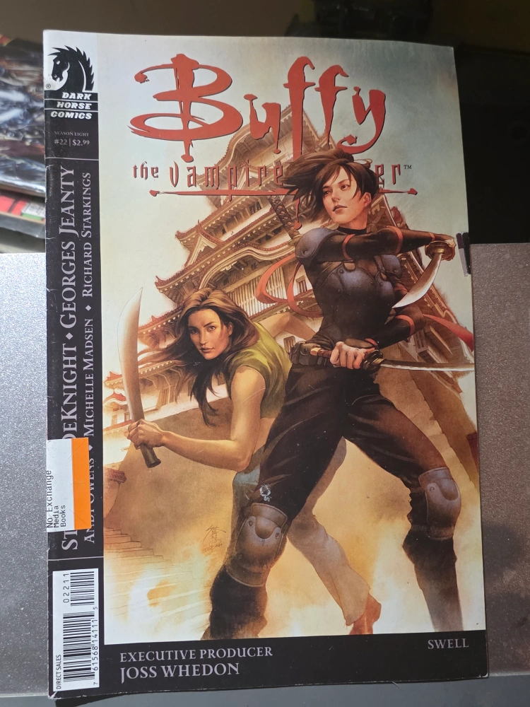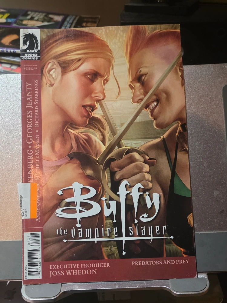 Selling a collection of comic books including Venom: Dark Origin, Buffy the Vampire Slayer, X-Men: Days of Future Past, The Amazing Spider-Man, and Men of War. They're in good condition and ready for a new home!