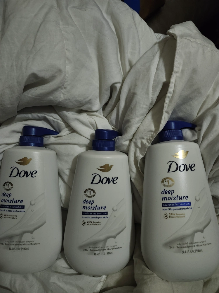 I have three bottles of Dove Deep Moisture body wash. Each bottle contains 30.6 US fl oz or 905 ml. This body wash nourishes the driest skin and provides 24hr renewing MicroMoisture. Perfect for keeping your skin feeling soft and hydrated!