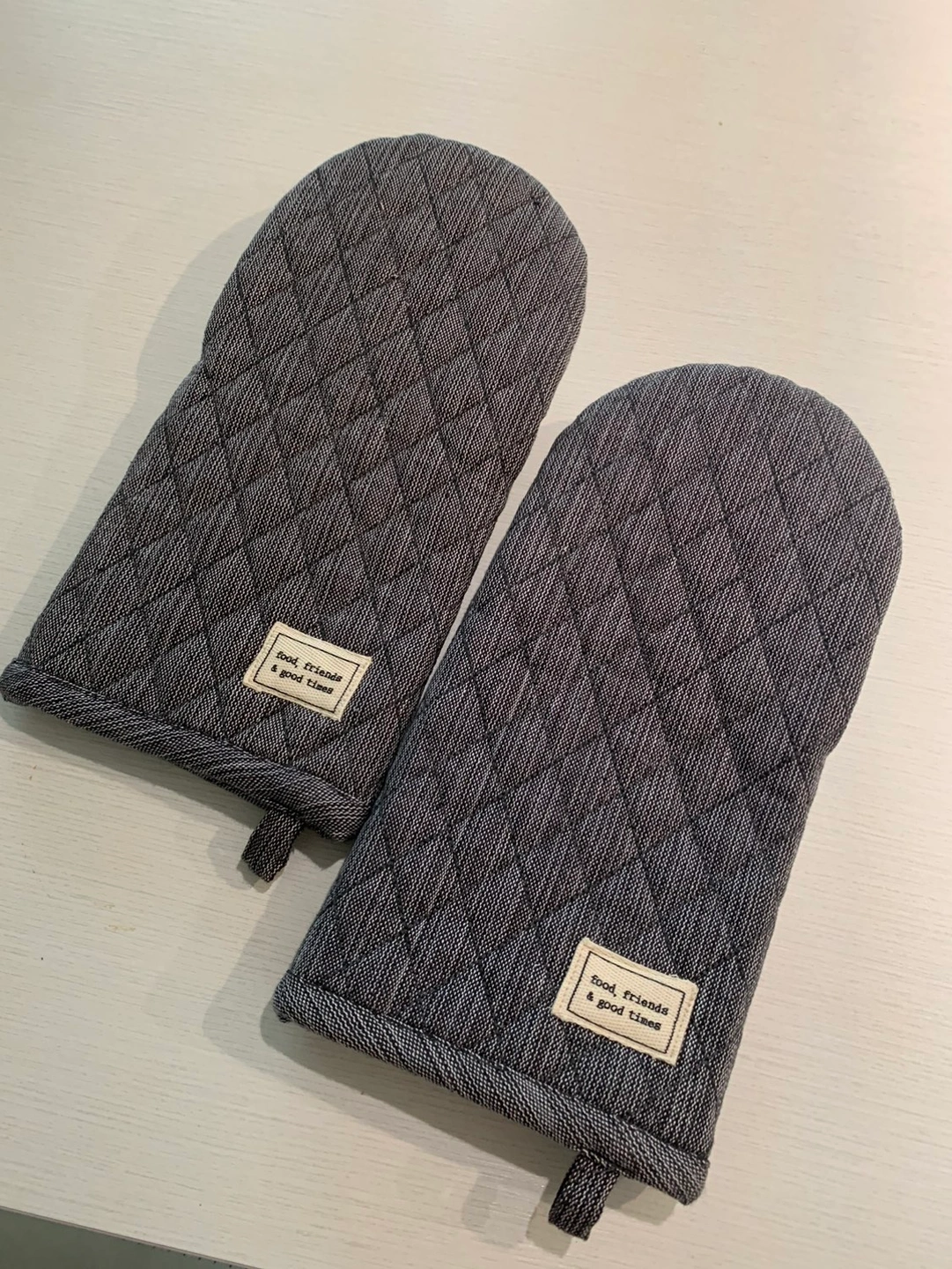 From H&M. Realized it’s not great at protecting hands from heat. It’ll probably be fine for toaster ovens but found that it wasn’t great for really hot stuff from the oven. Great for photoshoots or staging a home.
